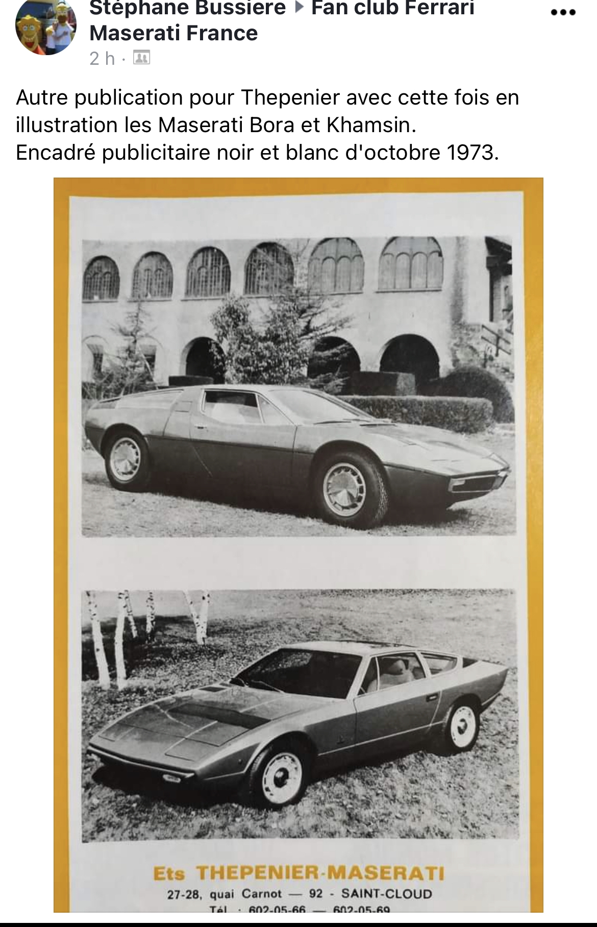 Le temps où Jean Thépenier à Saint Cloud était l’importateur exclusif Maserati pour la France :