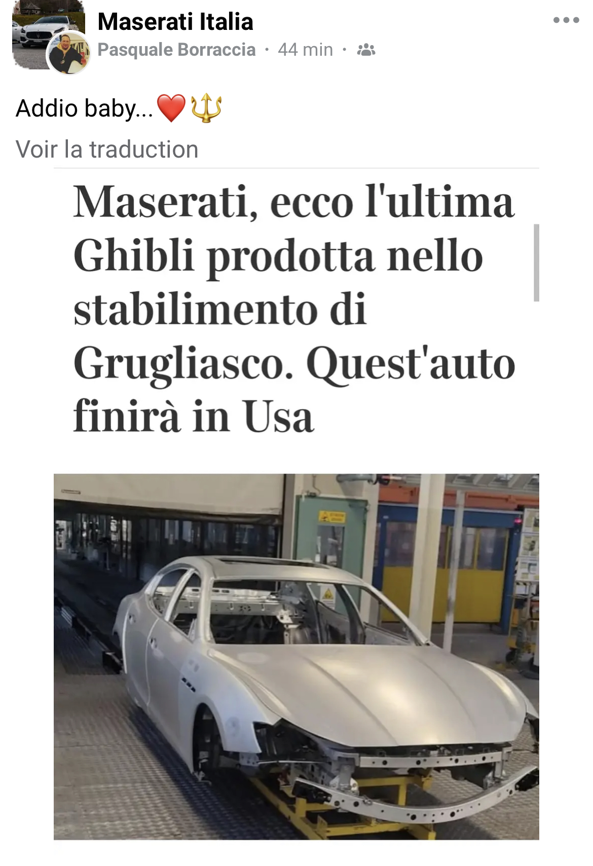 Grugliasco (ancienne usine Bertone) où étaient assemblées depuis 2012-2013 les Quattroporte VI et les Ghibli III va fermer. L’usine a même été mise en vente par le groupe Stellantis. J’ai vu passer la rumeur selon laquelle Elon Musk serait intéressé pour y faire des Tesla. Mais ce ne sont que des rumeurs.