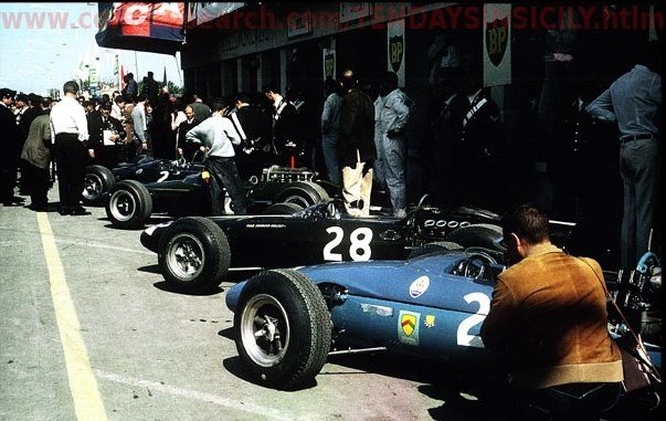 - Guy Ligier réceptionne sa Cooper Maserati pour le championnat F1 de 1966 = - en 1967, il en achète une autre, une T81 vue ici = - Grand Prix d'Espagne 1954 = 250F No 28 de la team BRM, pilotée par Harry Schell. La voiture semble bleue sur la photo mais est en fait vert foncé.