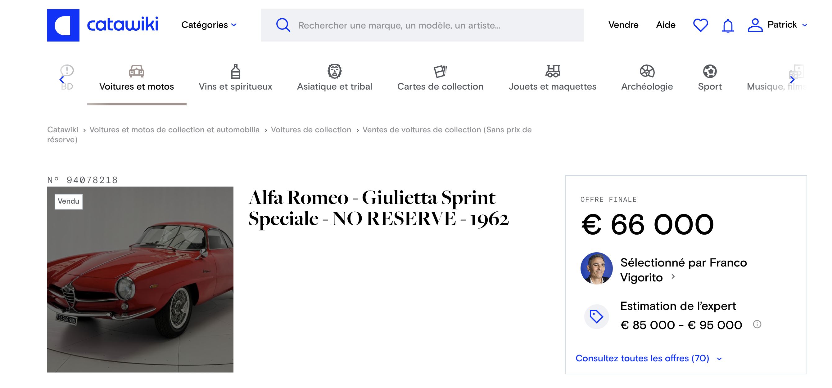 Elle a été vendue à 66000€ mais je n'étais pas monté si haut