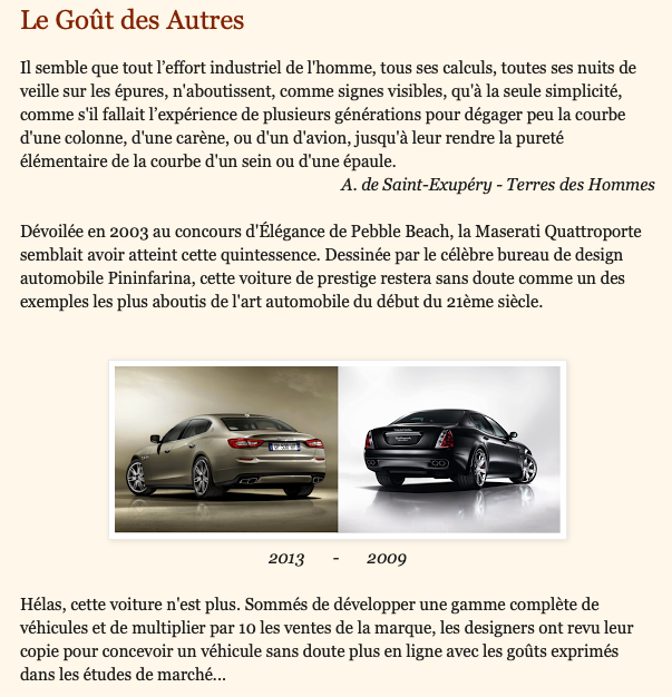 Pour moi elles n'ont pas tant changé que ça...et puis je les ai toujours trouvées dans l'esprit Maserati.