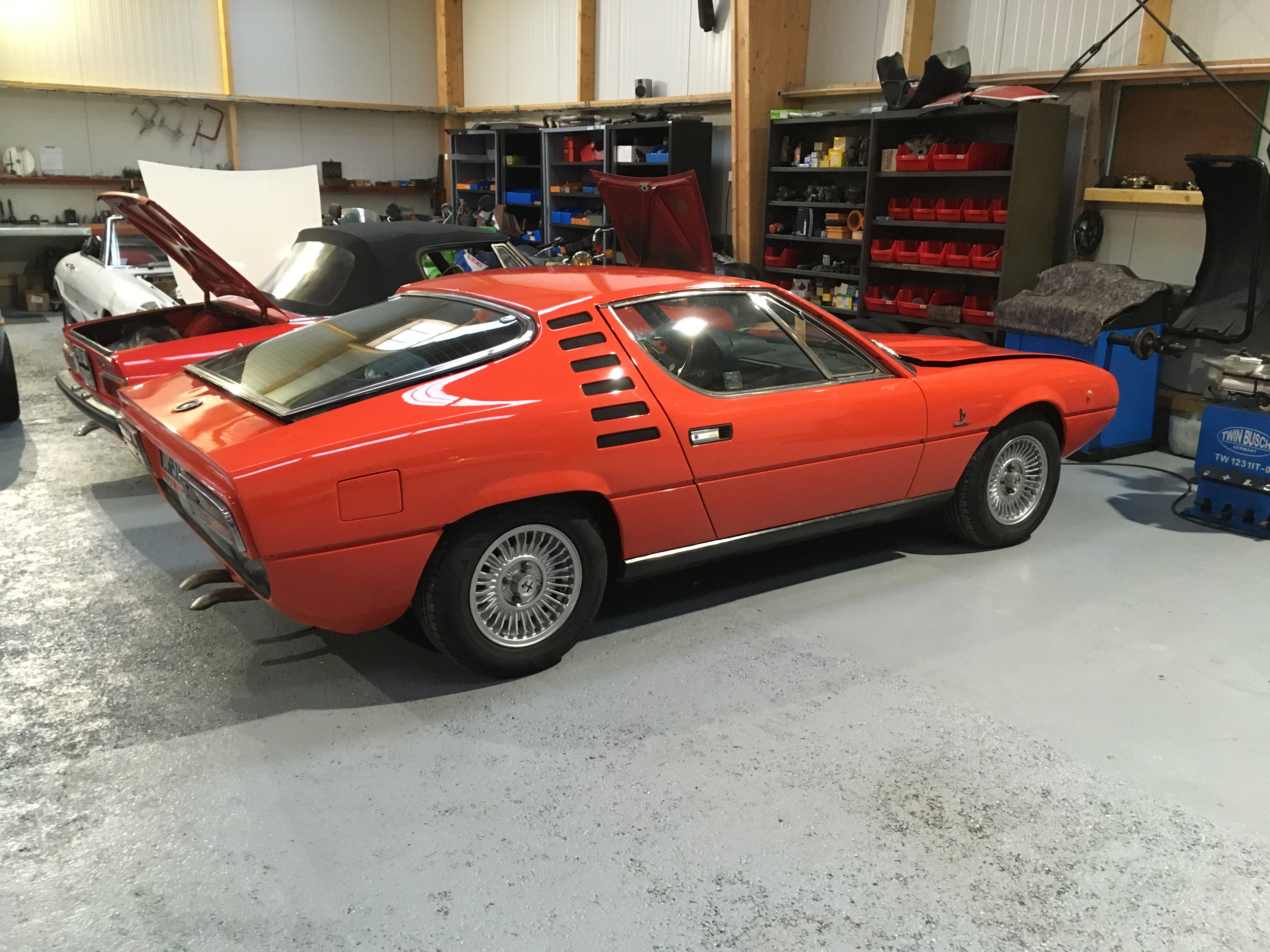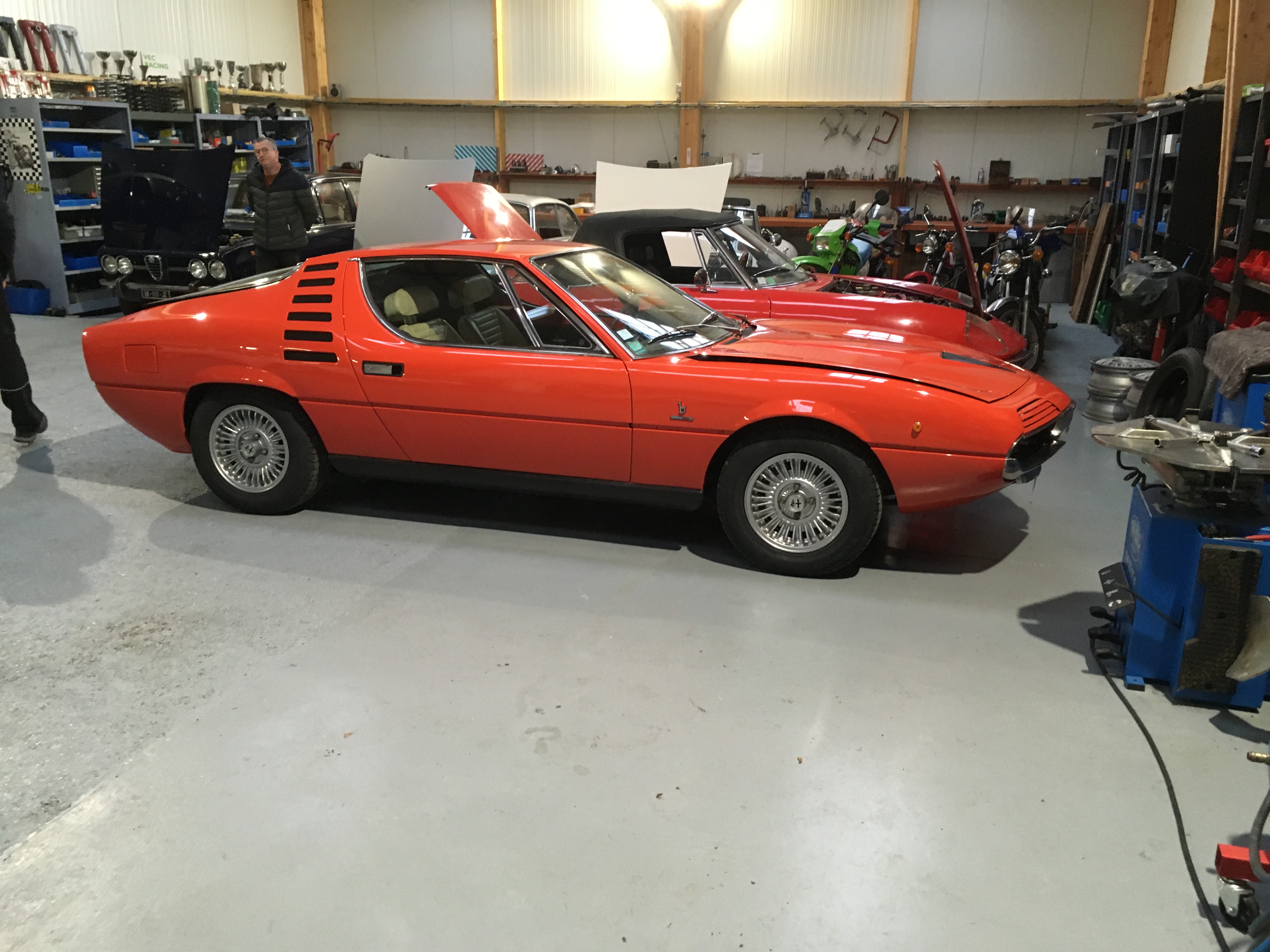 Au milieu de belles Alfa.... Et arrivée au bercail... Elle est à la place du GTV6, qui lui aussi a la batterie dans le coffre arrière, plus facile pour mettre chargeur de veille. Le pauvre GTV 6 est rélégué dans l’entrepôt....