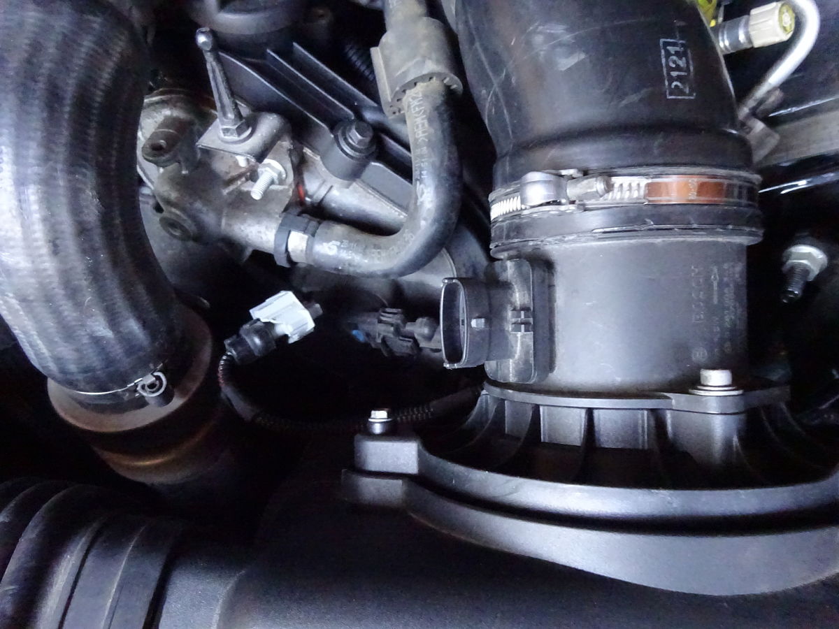 Cache moteur enlevé Débrancher le connecteur du débitmètre facile Avec une douille de 4mm allen défaire le débitmètre et son collier clé à pipe de 7mm le sortir et l'enlever avec une clé à pipe de 7mm enlever le filtre à air , il faut un peu triturer pour le sortir car la durite gêne un peu . Le mieux c'est de l'enlevée mais le 2è collier n'est pas récupérable donc comme j'en avais pas sous la main je m'en suis sorti comme ça ; je vais le changer par la suite car pour sortir le filtre à huile qui se trouve dessous c'est plus simple ( Vidange Samedi ) un petit coup de nettoyage dans le logement et on remonte pas bien compliqué il faut une douille de7mm femelle un embout allen 4mm un petit cliquet avec rallonges éventuellement et un filtre neuf bien sur