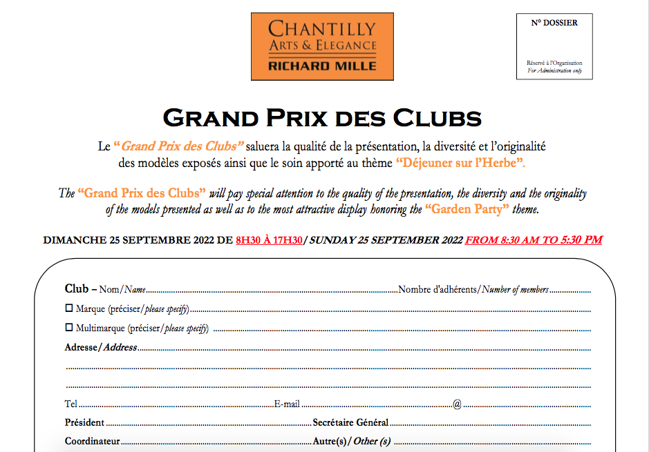 Voitures trop récentes pour faire une espace club à Chantilly « à l’intérieur », mais possible dans le parking happy few juste avant l’entrée