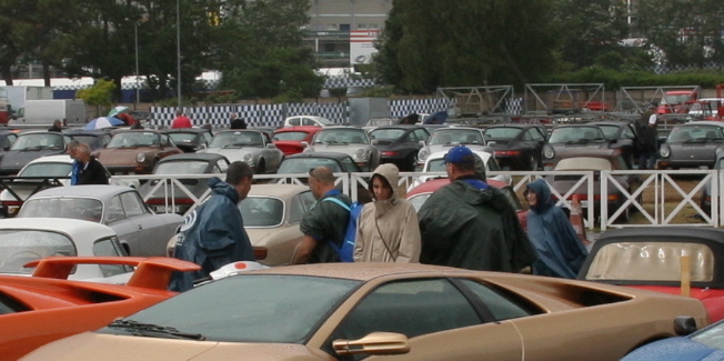 Porsche, elle est de dos. On ne vois que le toit (le targa au centre de la photo derrière le monsieur avec son sac à dos) mais je suis presque sûr que c'est elle.