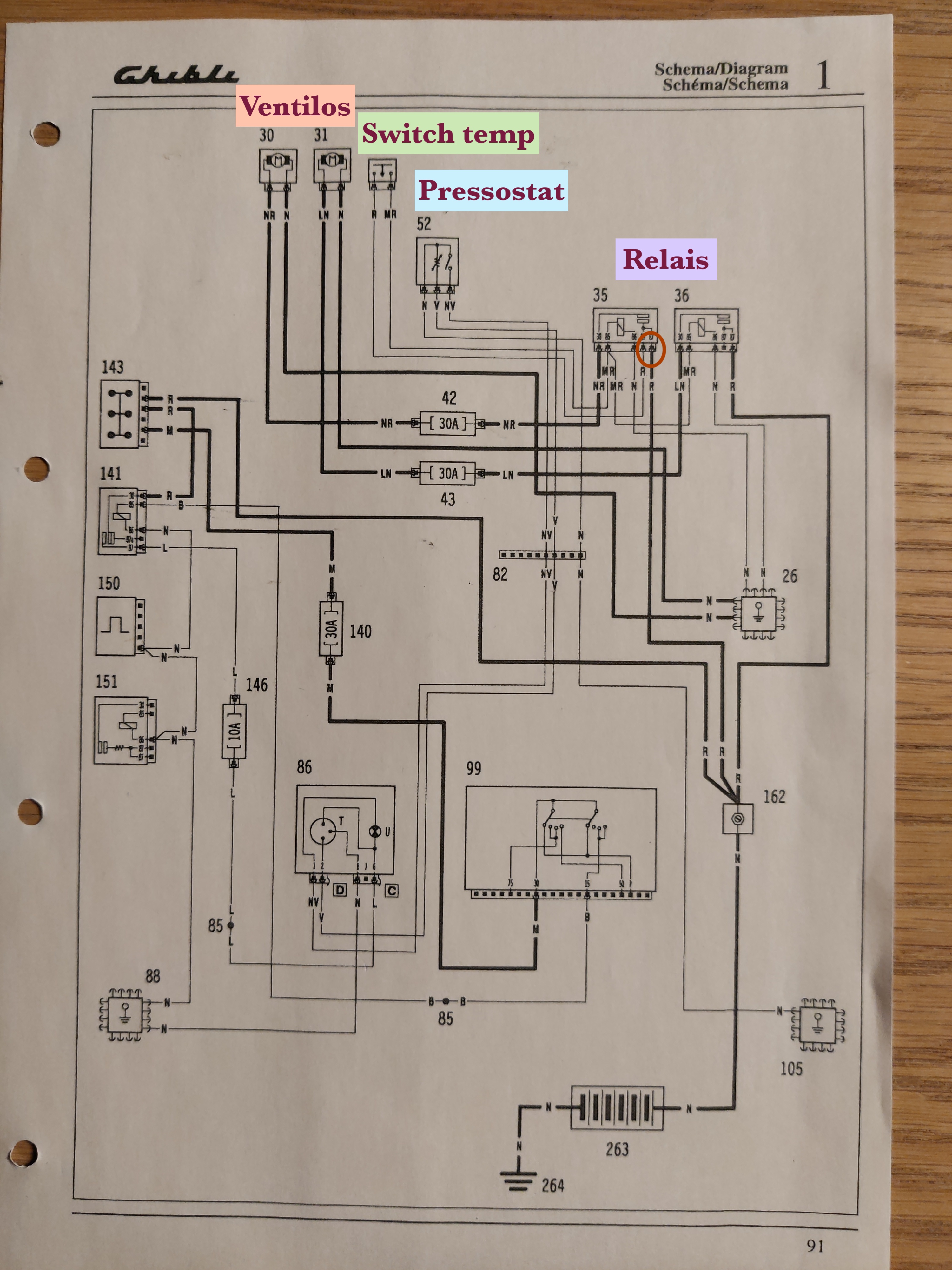 Armé de mon multimètre, du schéma de la ghibli et d'un bout de cable, j'ai investigué.