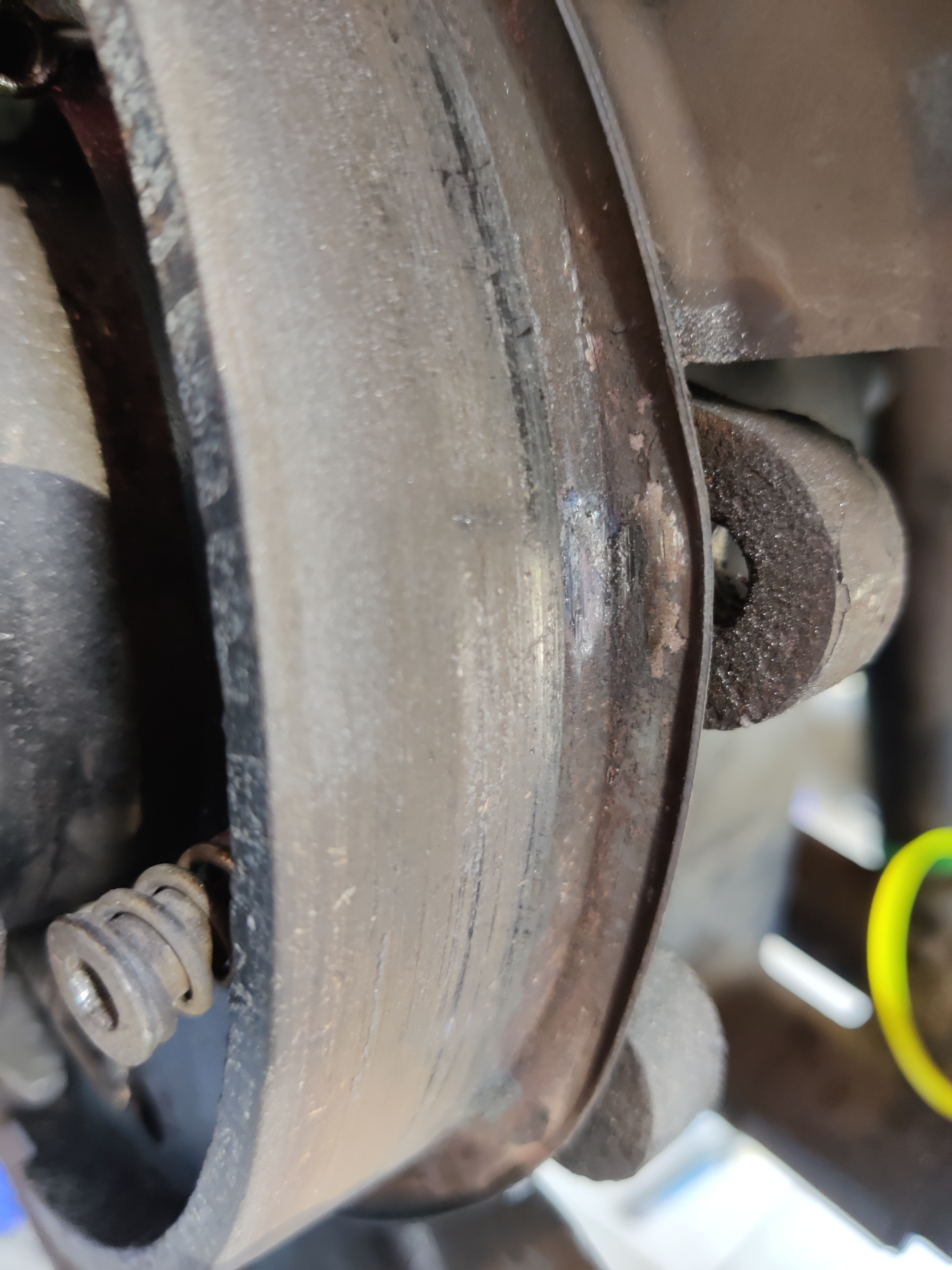 Je vais déjà démonter le truc, voir à quoi ressemble les plaquettes et si ça ne fait plus de bruit sans. Si vous avez des idées. L'étrier pourrait être grippé (il sortait pourtant avec l'air comprimé ou en tout cas remontait, je n'ai jamais réussi à les expulser à l'arrière).