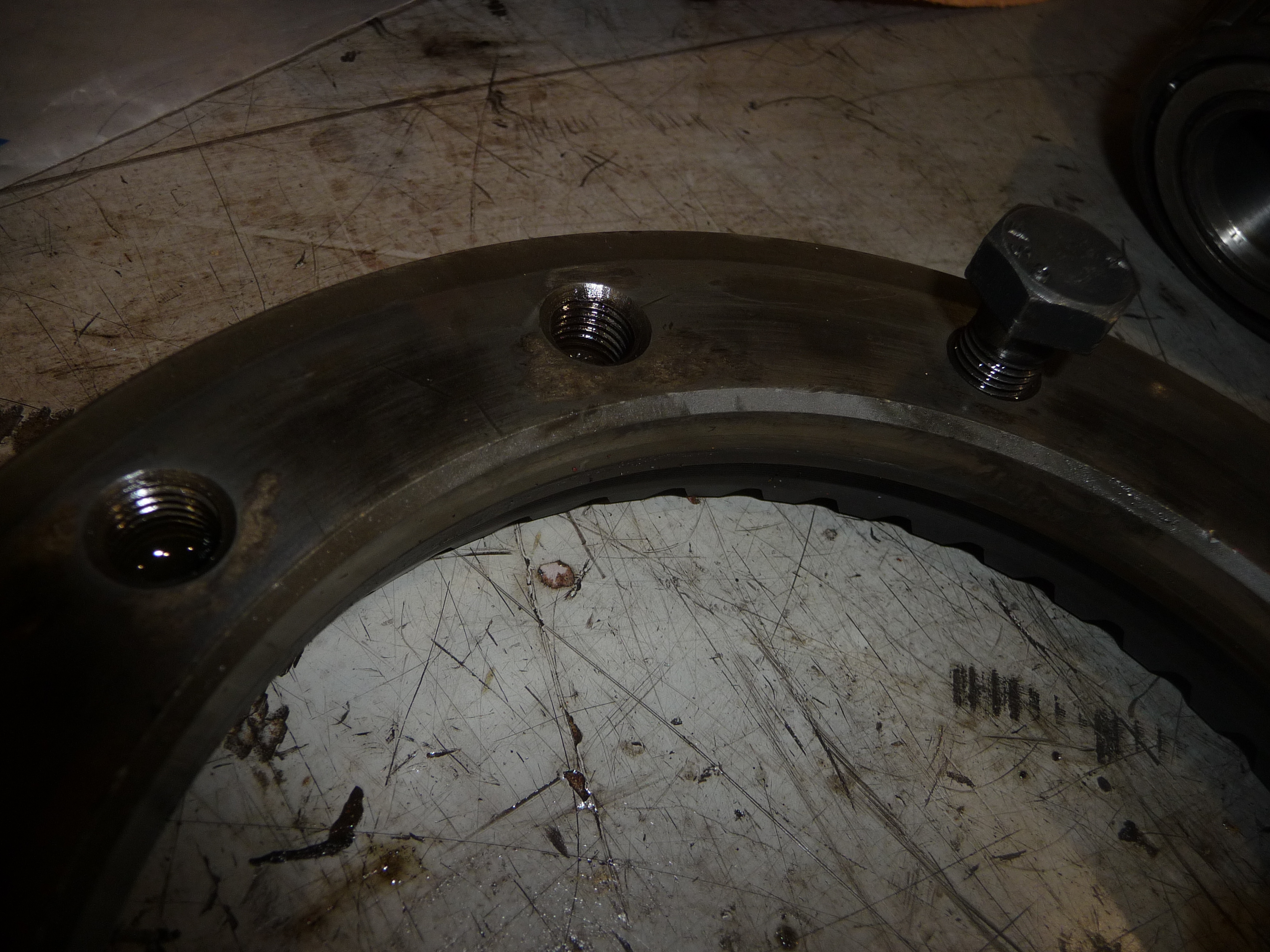 D'abord, comme on pouvait le craindre, les orifices dans le disque sont matés/ovalisés (conséquence des chocs dûs au jeu entre disque et couronne).