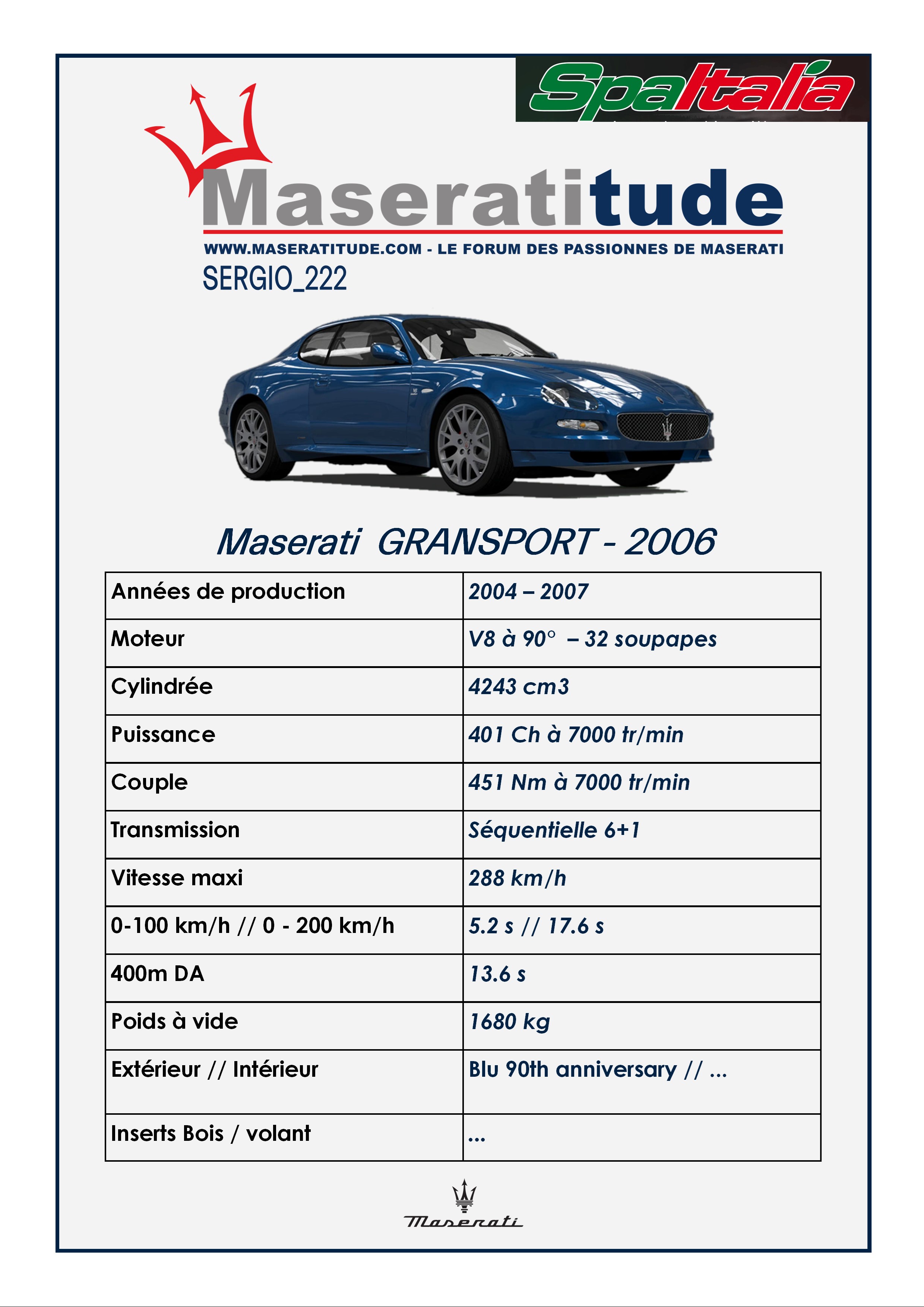 Sinon, voilà les fiches techniques des autos pour lesquelles j'ai reçu les infos. J'ai ajouté le pseudo pour le clin d'oeil. On peut télécharger depuis ici je crois. Sinon je vous envoie en PM.