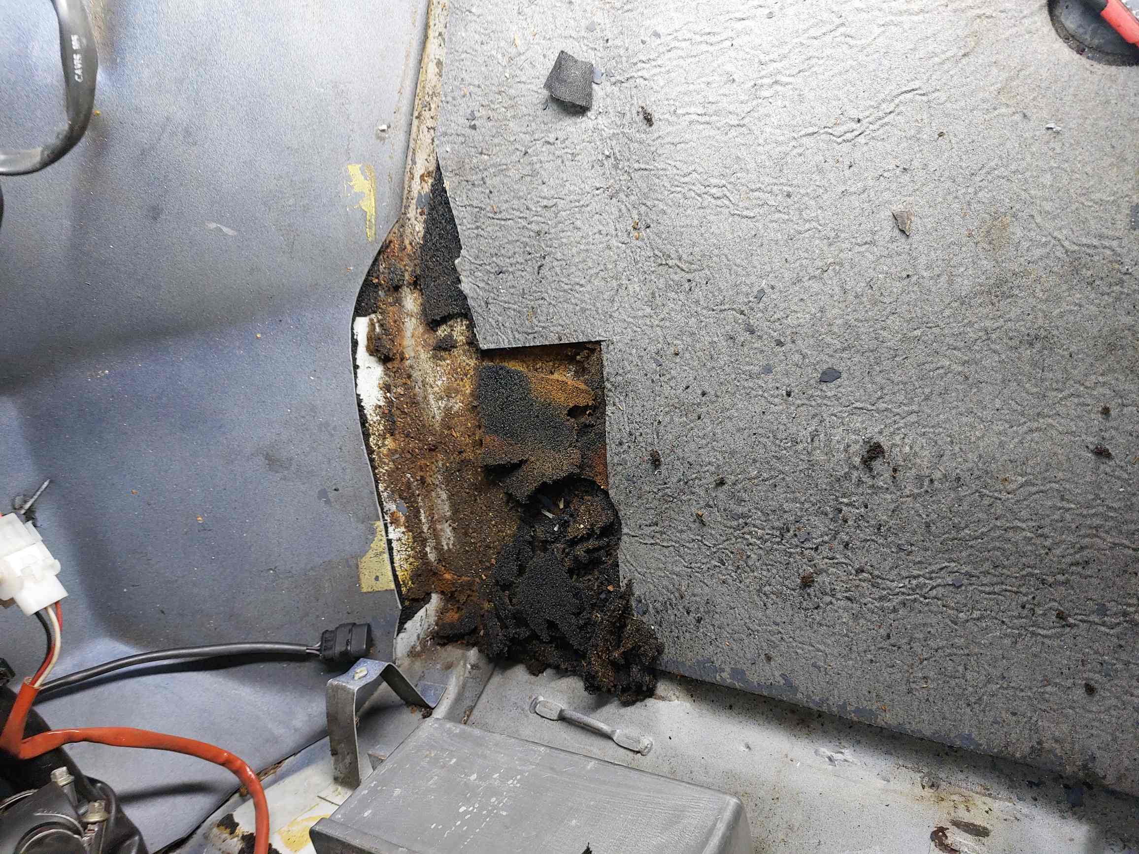 Comme je l'avais supposé à l'époque la voiture a dû rester immobilisée pendant un certain temps et probablement avec des fuites d'eau dans la cabine.