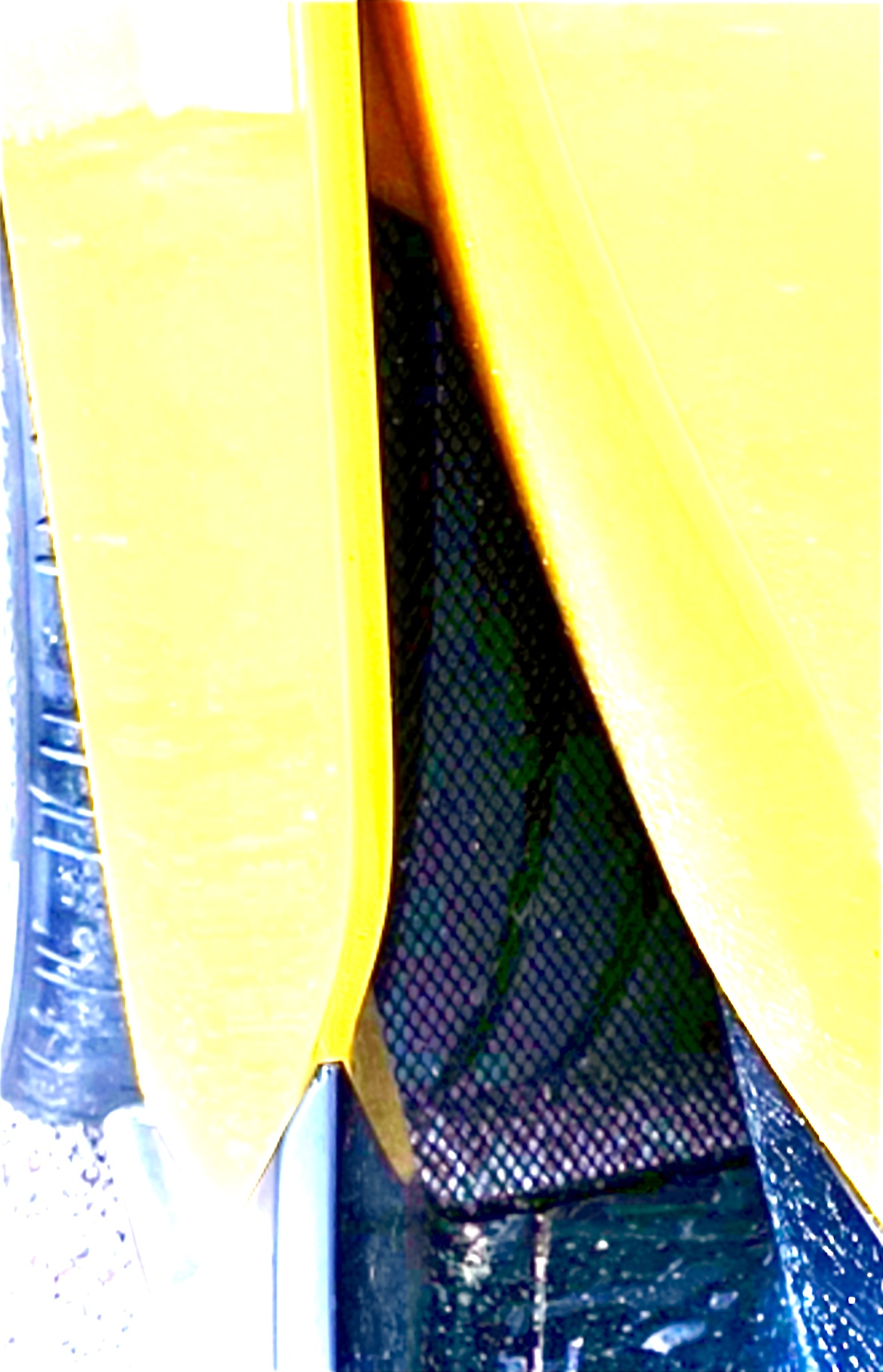 Le bas de caisse excavé a tendance à se salir. Cela est du aux projections de la roue avant, séparée de cette galerie de bas de caisse par une simple grille, ce qui est très efficace aérodynamiquement pour évacuer l’air tourbillonnant autour de la roue avant.
