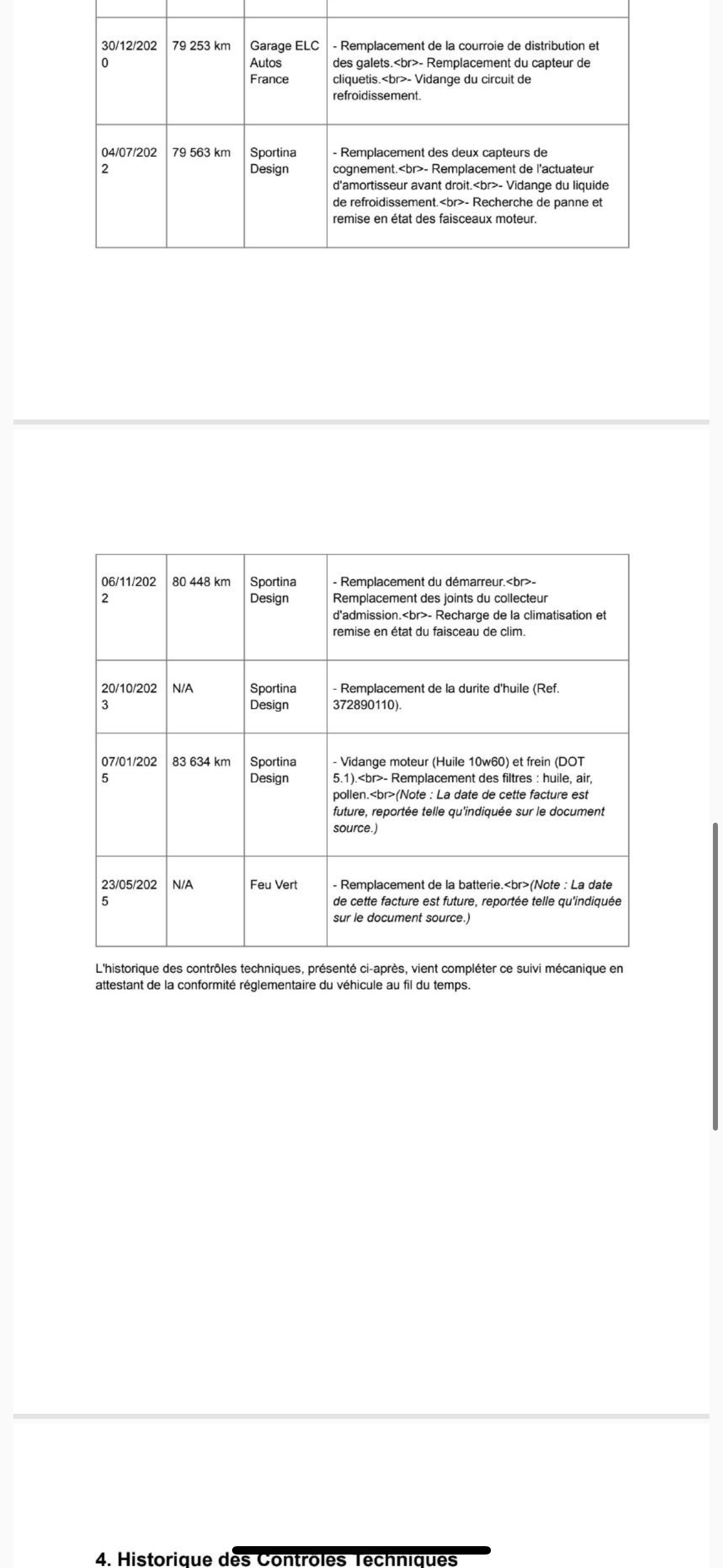 Le propriétaire m’a passé l’historique d’entretiens qui a quelques trous il me semble.