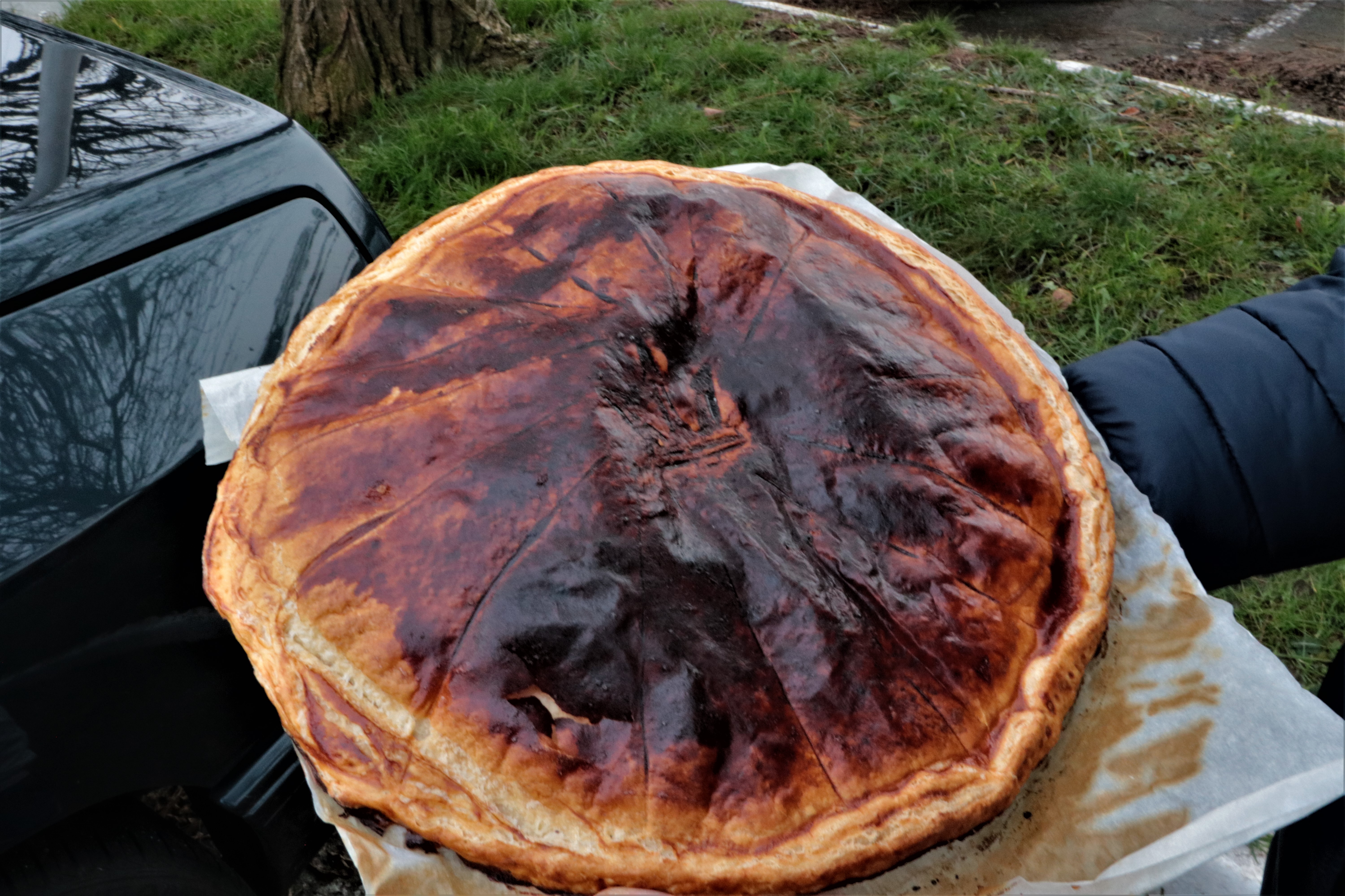 Bah en fait c'est une galette des rois... faite maison, flanquée d'un trident en son milieu...il en reste un peu...
