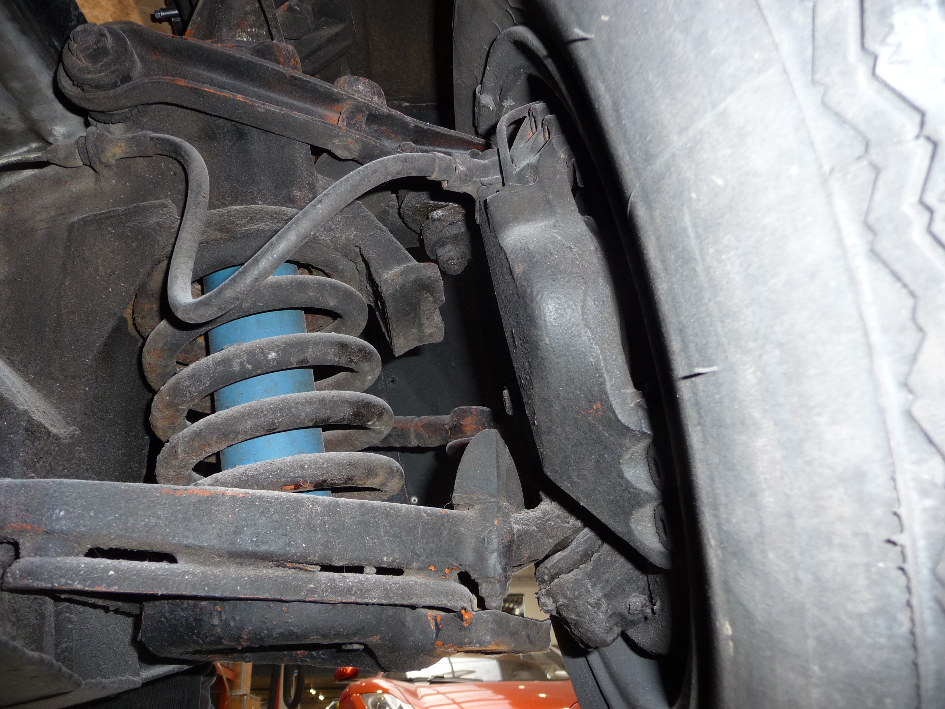 Oui, les bagues de suspension semblent neuves à l'AR, sans doute changées peu de temps avant le stockage de la voiture.