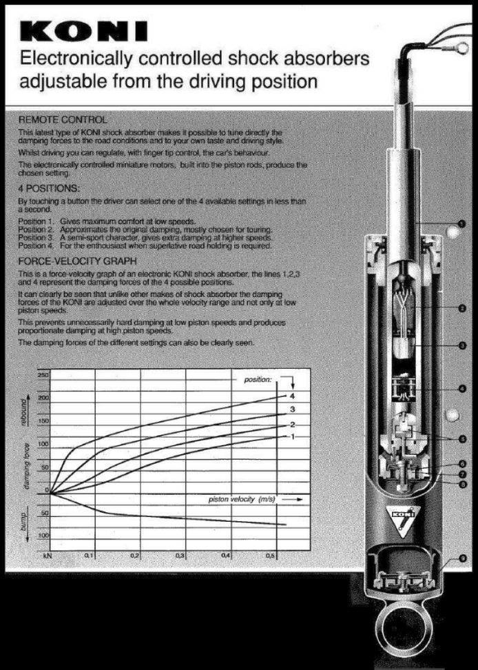 L'objet qui pose problème, c'est le servomoteur, marqué "M" sur chaque amortisseur, la fameuse pièce en photo qui est en fait un assemblage d'une électronique de commande, un micromoteur 12V, un réducteur, et un potentiomètre de recopie, bref un servomoteur classique, mais un modèle spécialement fabriqué pour Koni....