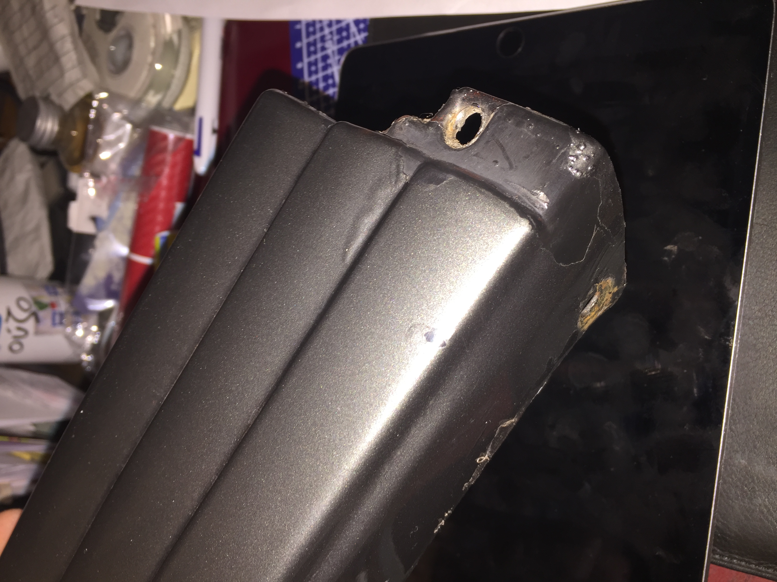 meme que comme ca rentrait pas tres bien, le précédent propriétaire a déformé la tole pour que çà passe!