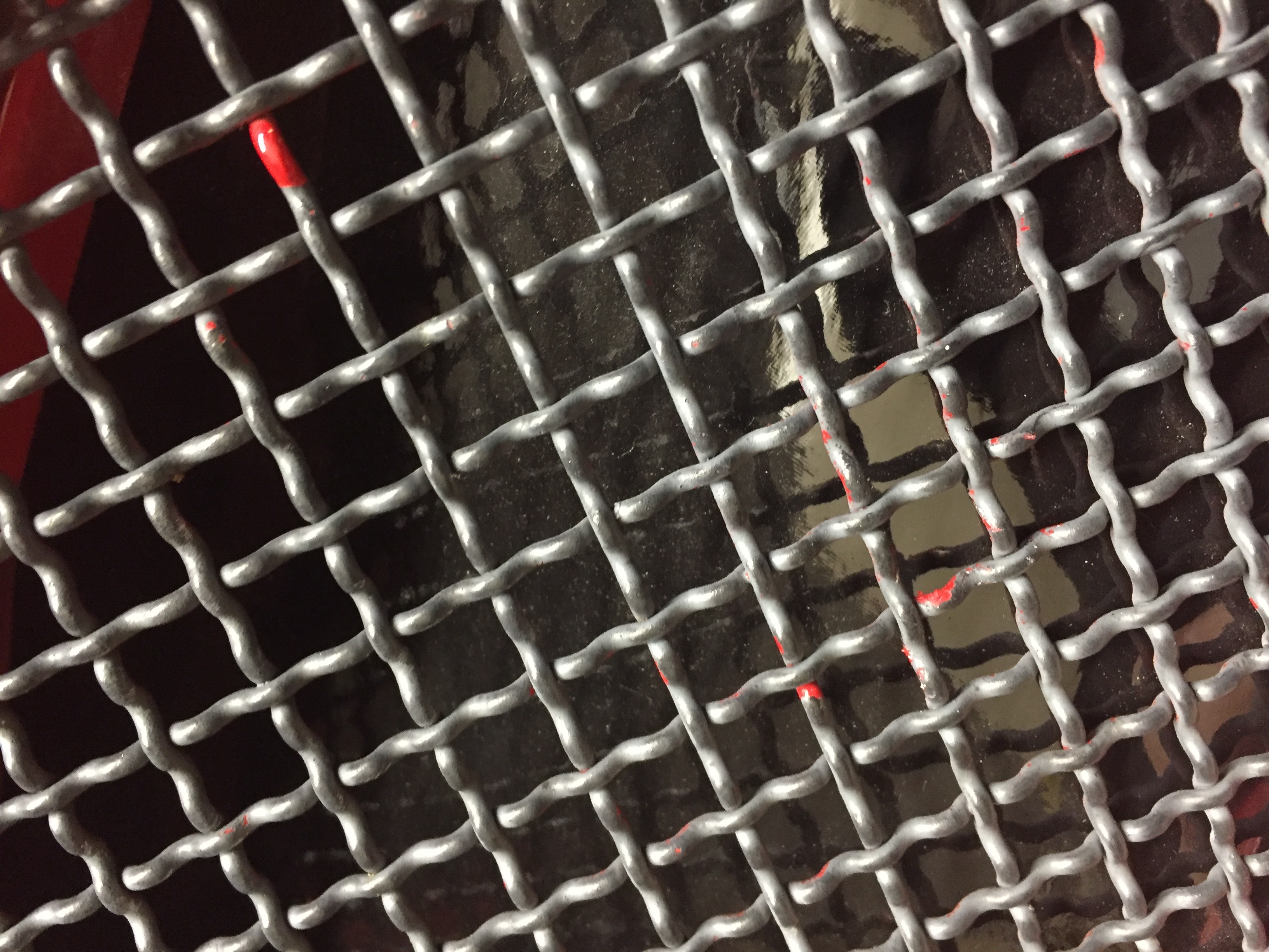 Je n'ai jamais vu du rouge d'origine sur les grilles de calandre. Il doit y avoir du gris foncé encore en dessous !