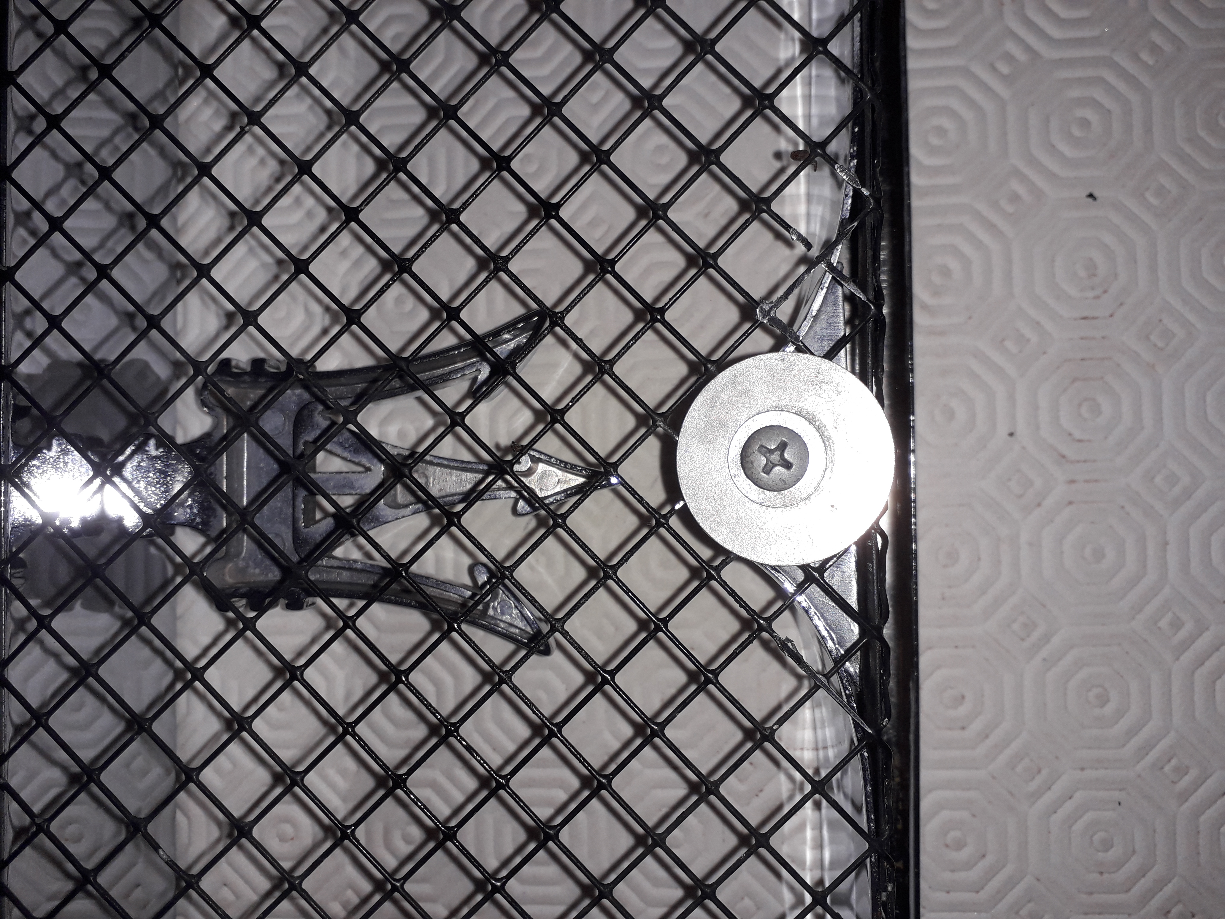 Renouveler l'opération sur les 4 pointes de couleur or si la calandre ne vient pas c'est qu'il y en a encore un qui reste dans son logement .