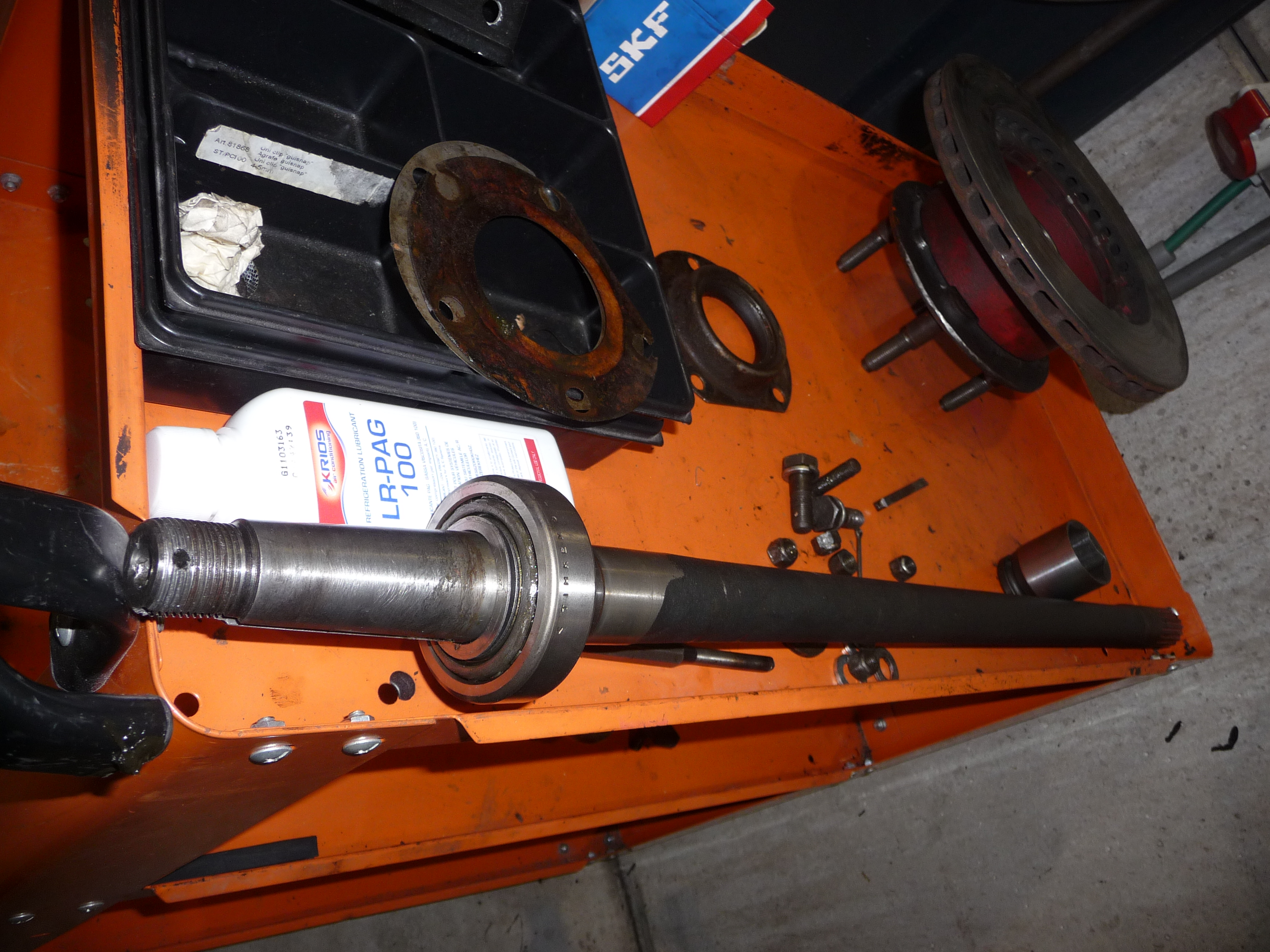 Mais il y a eu aussi de la "plomberie" (radiateurs de refroidissement et d'A/C, vannes, composants du circuit LHM et du circuit d'embrayage), les pompes à essence à remplacer et de la mécanique: diff, et maintenant ces roulements.