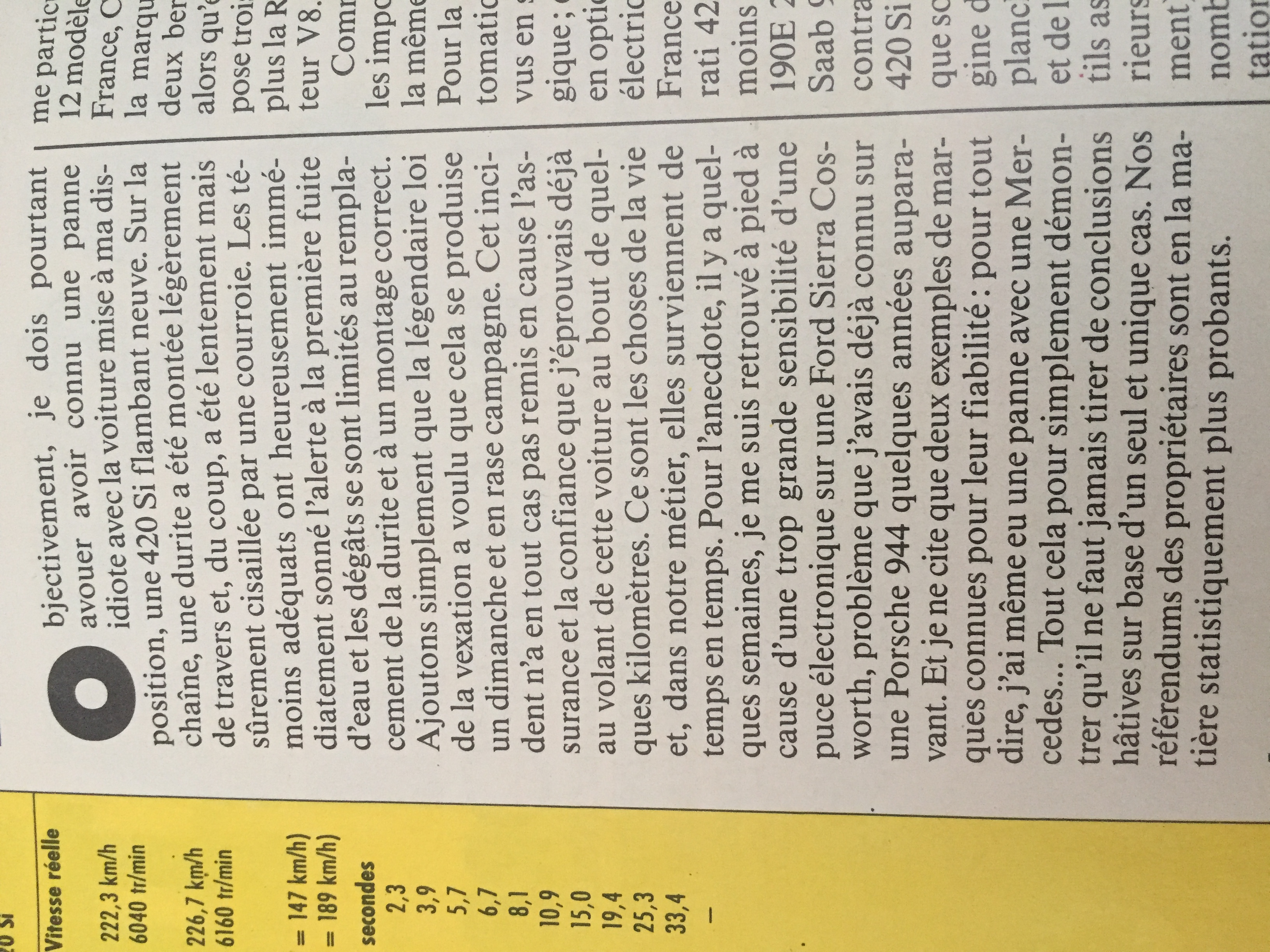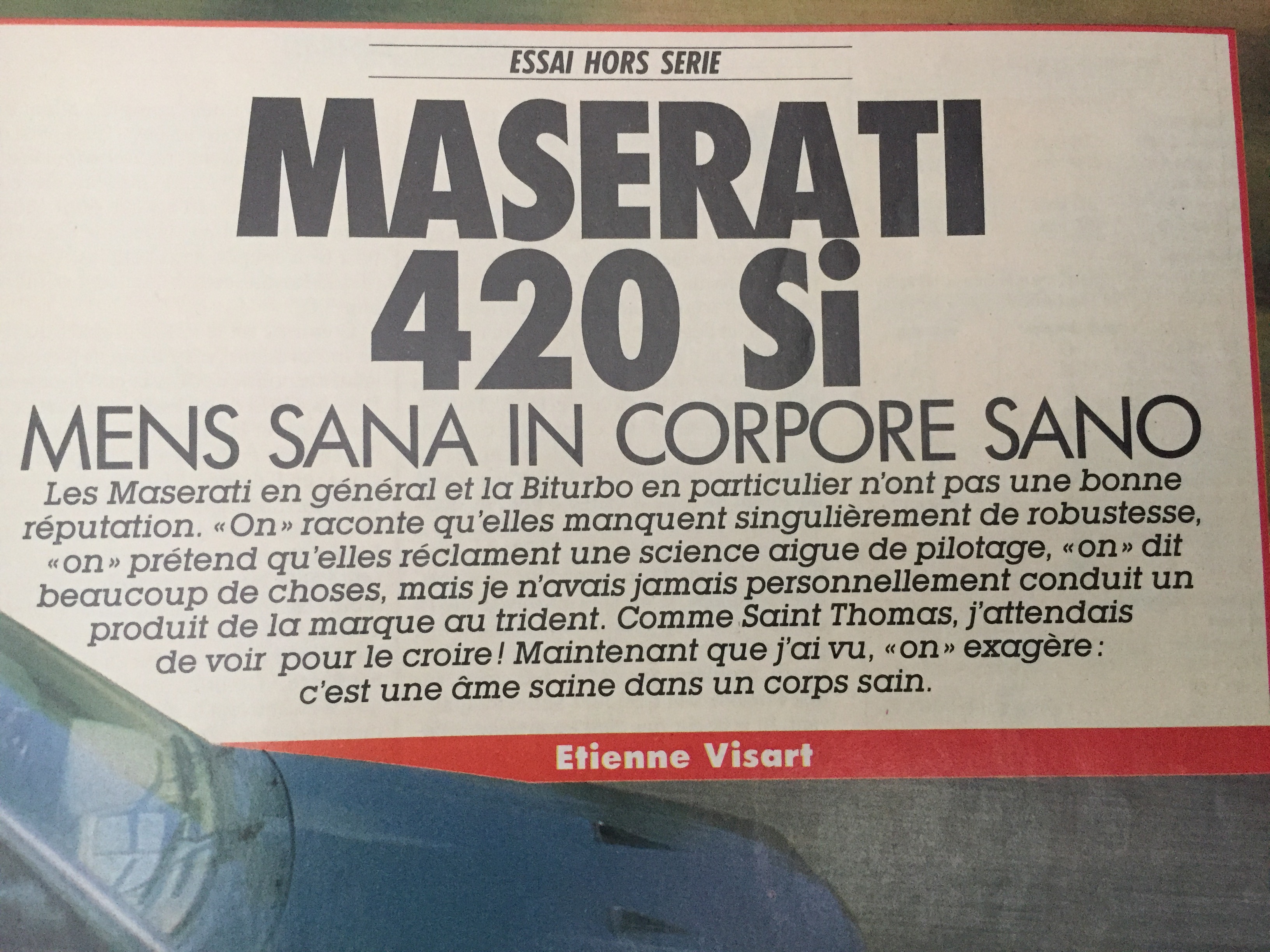 Une mésaventure similaire est arrivée lors de l’essai de la 420sI par Etienne Visart (Moniteur de l’Automobile en août 1988).