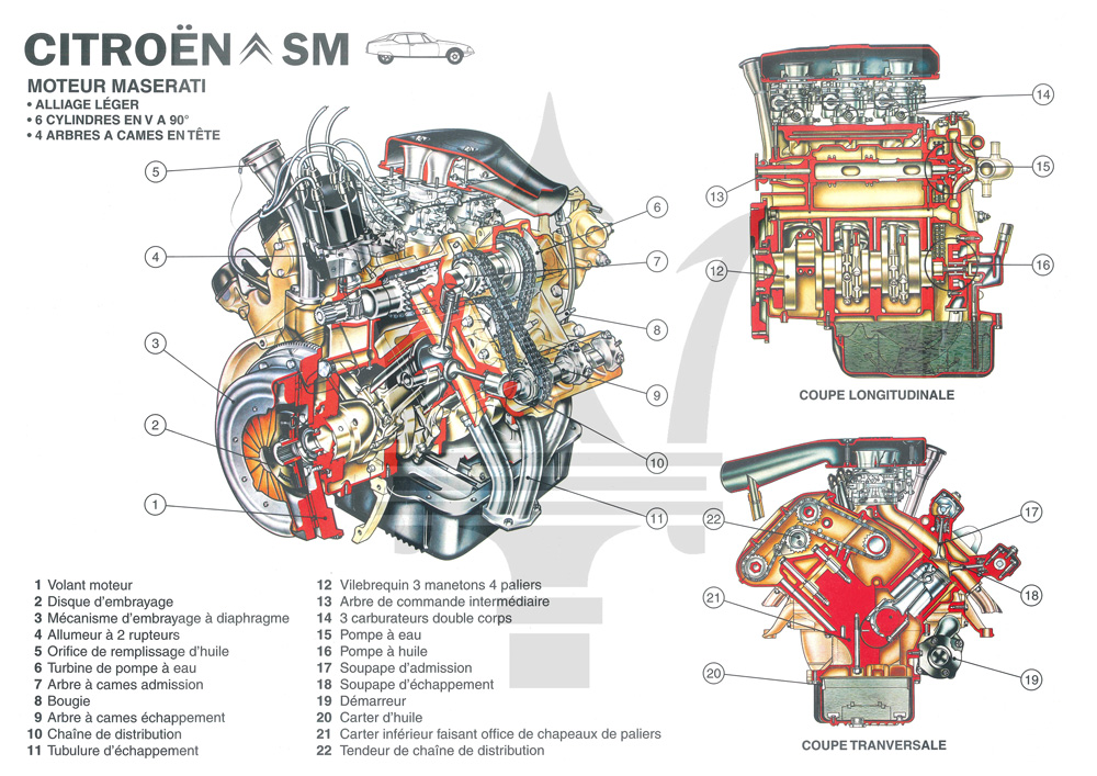 J'avais lu quelque part (faut que je cherche un peu pour retrouver cette info), que l'ingénieur Alfieri avait eu très peu de temps pour rendre un projet à Citroën. Il aurait bouclé le tout en 3 semaines (la créativité italienne) en partant d'un V8 ce qui explique le V à 90°.