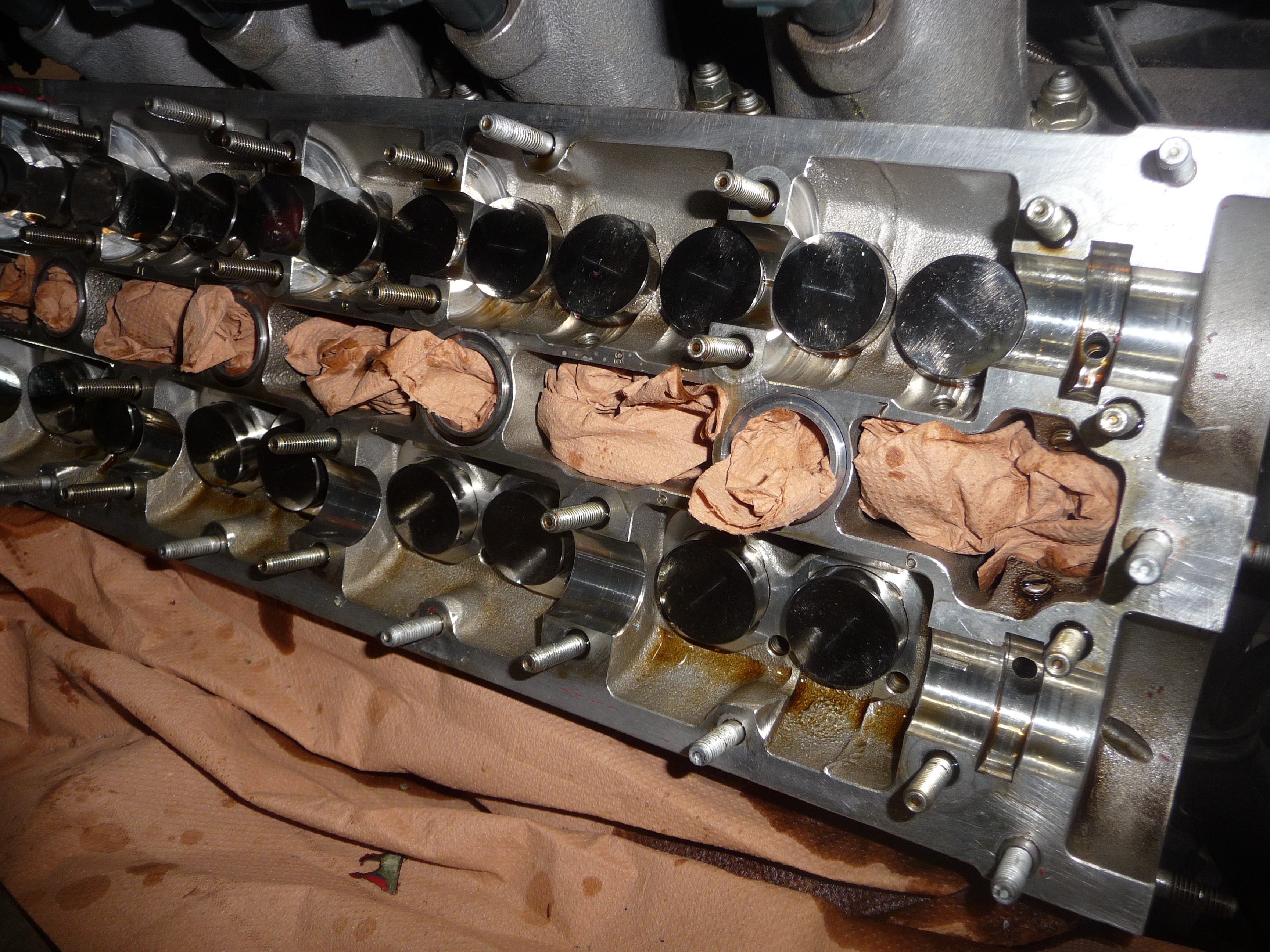 Pour ceux qui n'ont jamais vu (c'était mon cas), voici une culasse 5 soupapes par cylindre ouverte pour réglage.