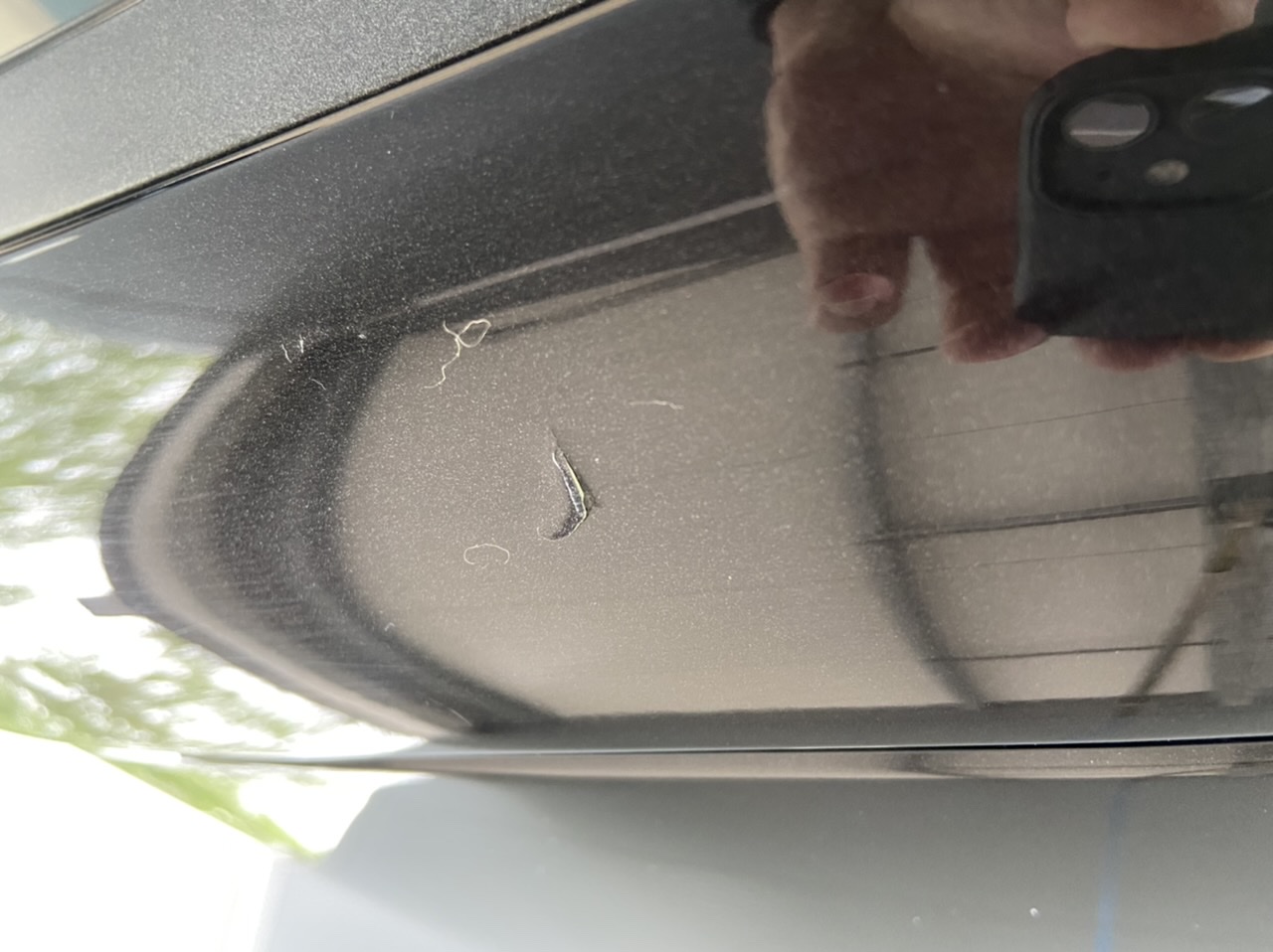 Non pas d'info sur la peinture mais elle n'est pas si récente, déjà pas mal de petits impacts de gravillon sur la face avant, et globalement je ne suis pas trop inquiet ça a été visiblement bien fait, sauf à cet endroit...