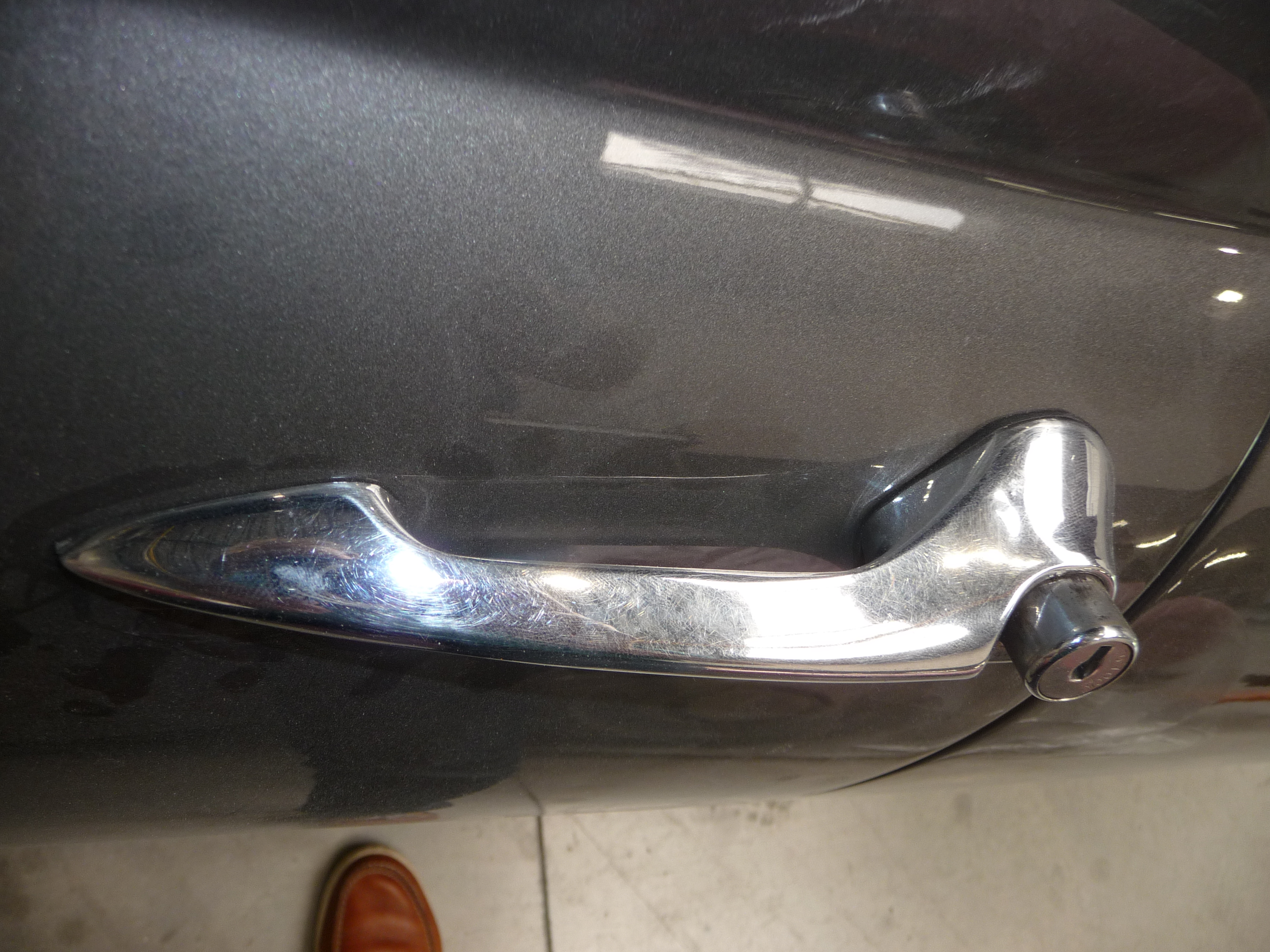 La raison en est l'utilisation sur cette Type E de roues à fils non d'origine, probablement des MWS (ex-Dunlop qui était la marque utilisée par Jaguar).