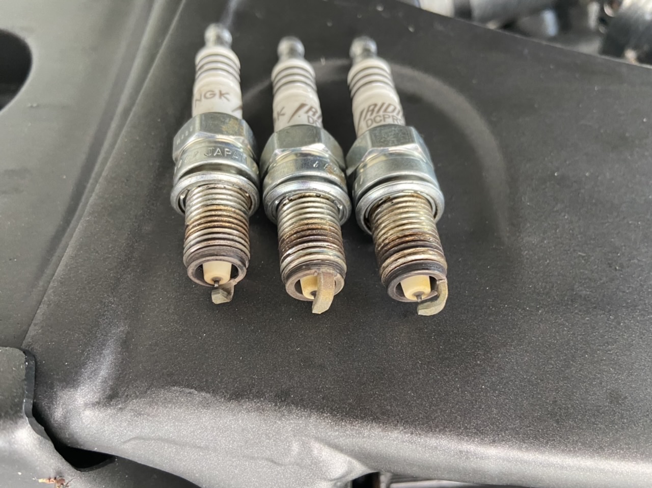 Brun gris jaune, difficile à dire quand même… En tous cas les électrodes sont nickel, sachant que les bougies ont vraisemblablement 5000 km d’après mes factures, 3000 mini…