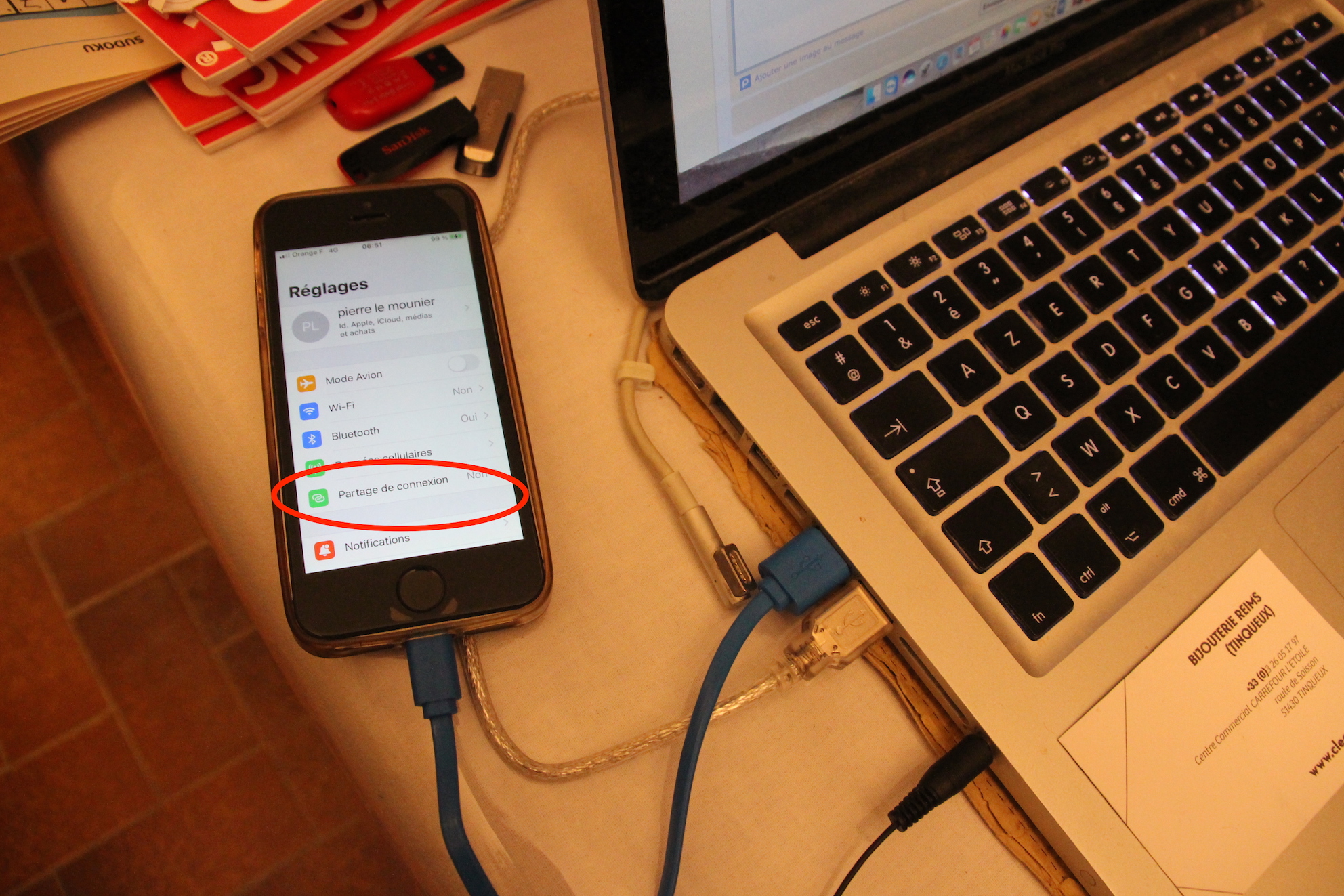 Réglages/partage de connexion/autoriser d’autres utilisateurs/via usb, avec un cable de connexion.