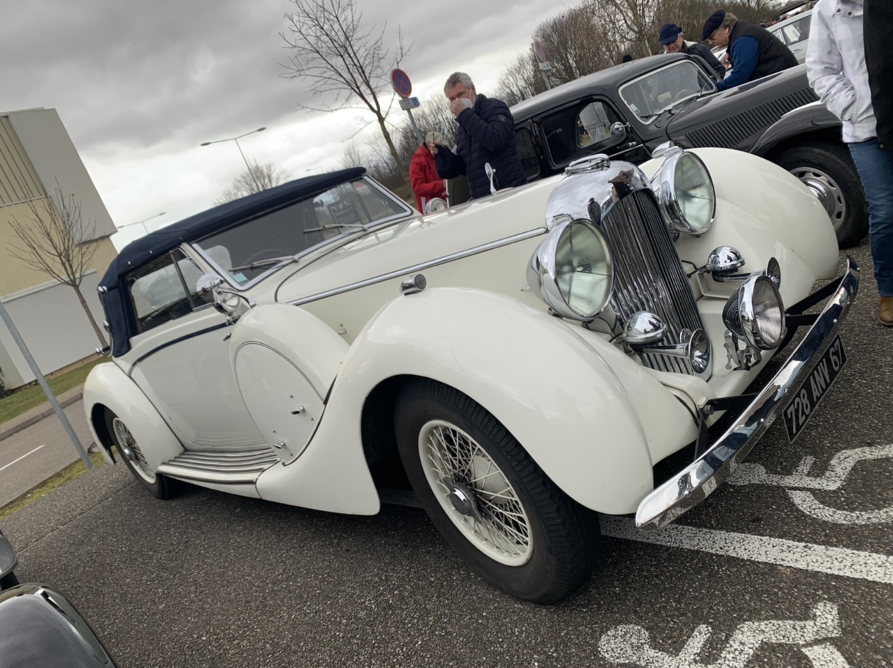C’est quoi le cabriolet blanc classique? Jag SS DHC fin des années 30?
