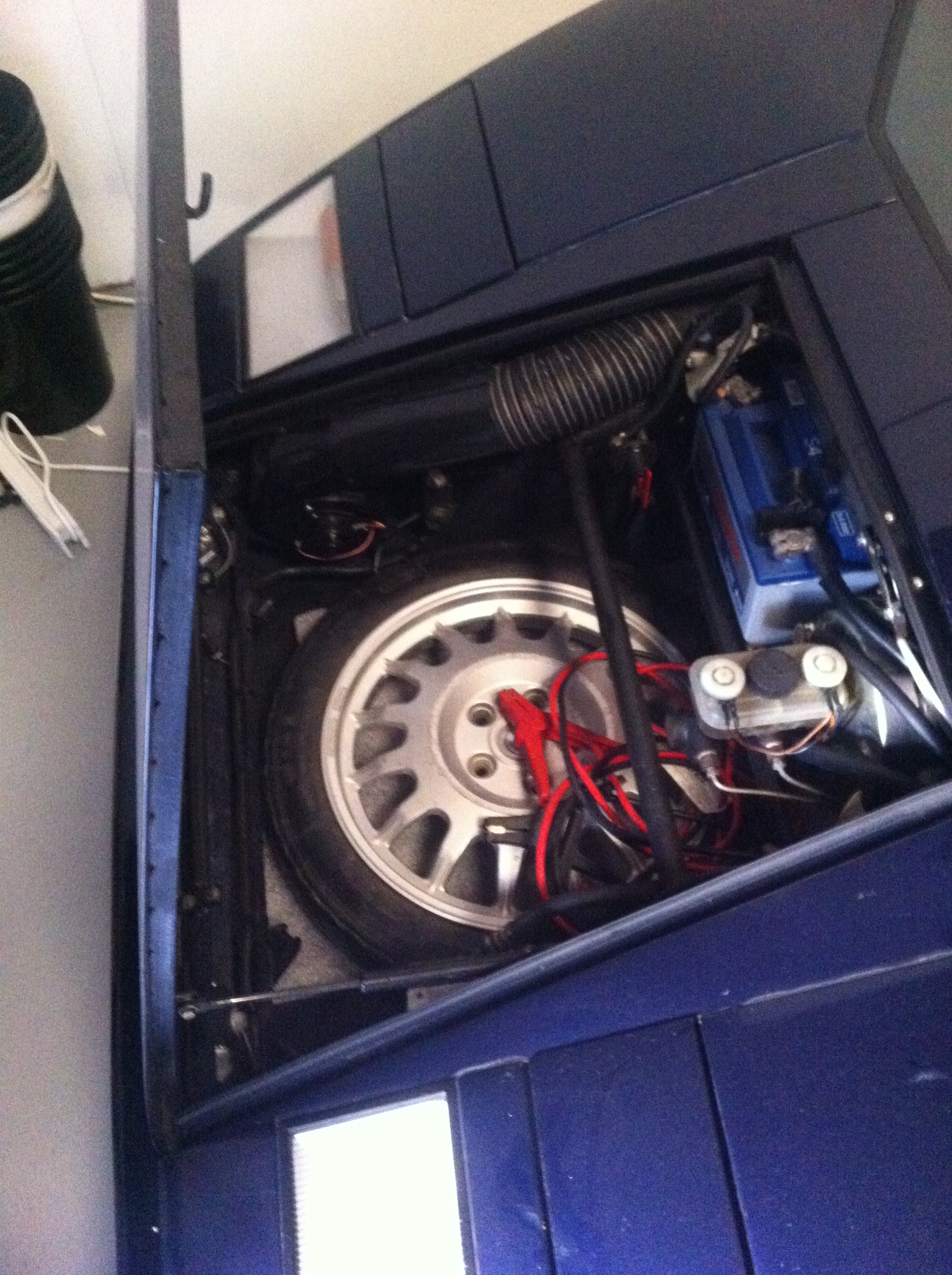 Le coffre est donné pour 150 l: 100 derrière le moteur, 50 à l’avant, partiellement occupé par le « kit de survie » (nan, pas un