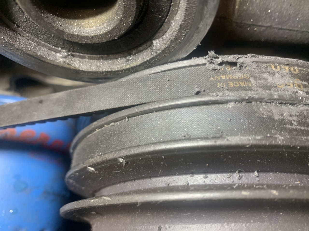 IL EST CÔTÉ EXTÉRIEUR.donc ça a frotté la poulie et voilà la source de la poussière de métal…