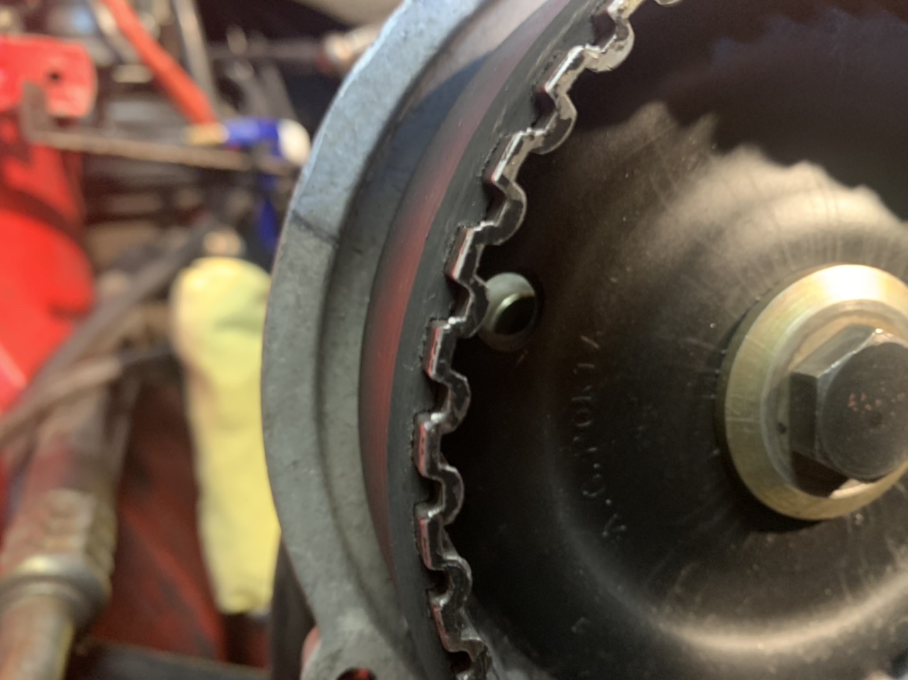 Des traces de poussières de métal repérées sur le carter de distri laissait craindre un problème avec la pompe à eau…