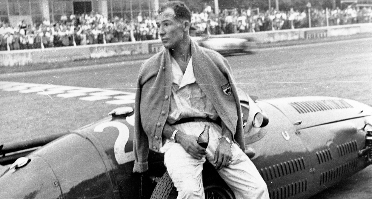 Stirling Moss aimait le coca cola ! Ci-dessous exténué après un run en Maserati 250F en 1956 quand il était pilote d'usine Formule 1 pour Maserati :