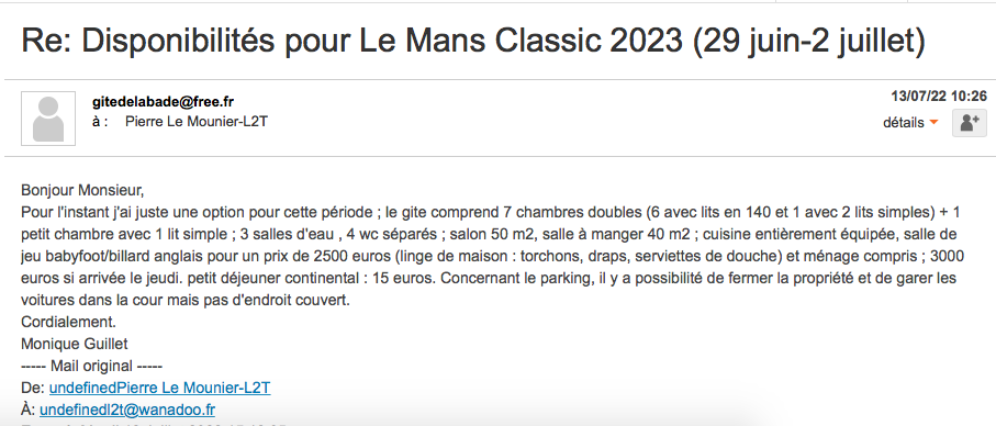 C'est vrai qu'au regard du succès du LMC 2023, ce n'est pas simple de trouver un hébergement commun qui correspond à tous les goûts et tous les budgets. :(