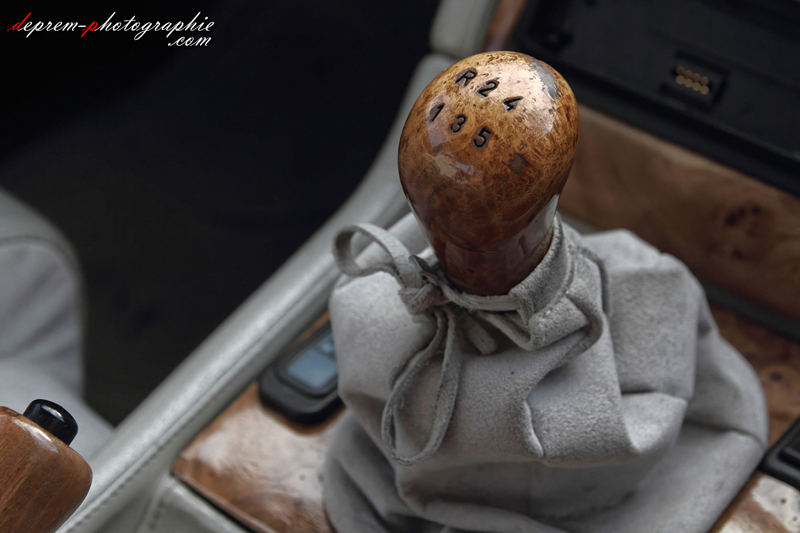 La 2.24v phase 1 conserve la boite classique des Biturbo depuis les débuts en 1981, la ZF inversée à première vers soi. Tiens, remarquez le contacteur à gauche du levier, encore un truc que la 2.24v inaugure : les amortisseurs Koni réglables avec 4 positions de dureté différente :