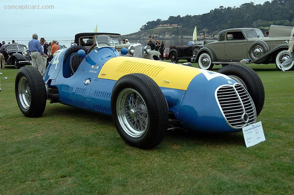 La même 4CLT ex-Fangio de nos jours à Pebble Beach, avec les couleurs argentines :