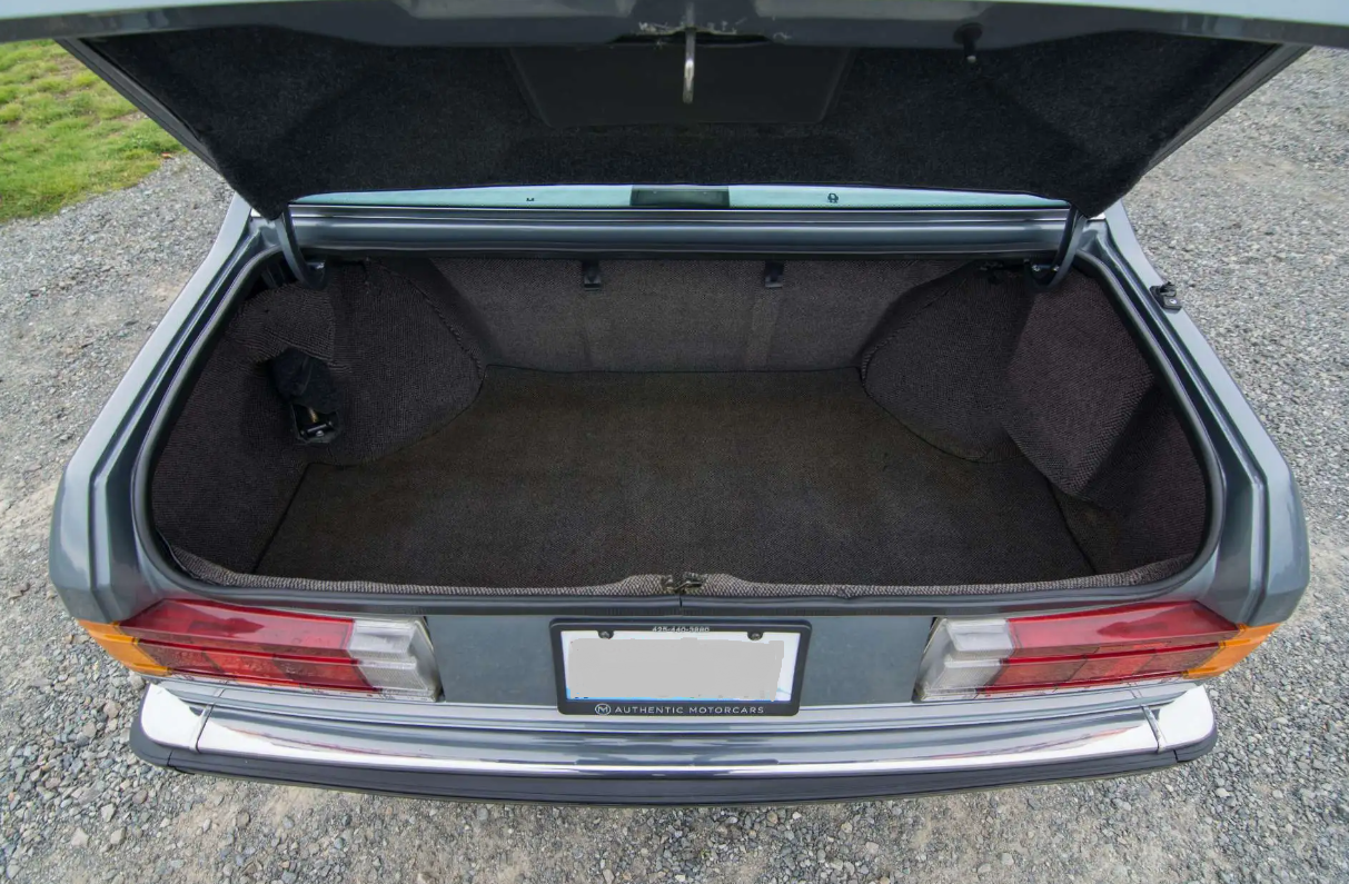 Le coffre, assez profond, dépasse les 500 litres. Comme sur toutes les Biturbo (y-compris 3200GT et Quattroporte IV) le réservoir est vertical derrière la banquette arrière, situation assez idéale car pesant pile sur le train arrière ce qui améliore son adhérence à la route, sans porte à faux, et loin des impacts en cas d’accident. Cependant adieu trappe à skis et banquette rabattable !