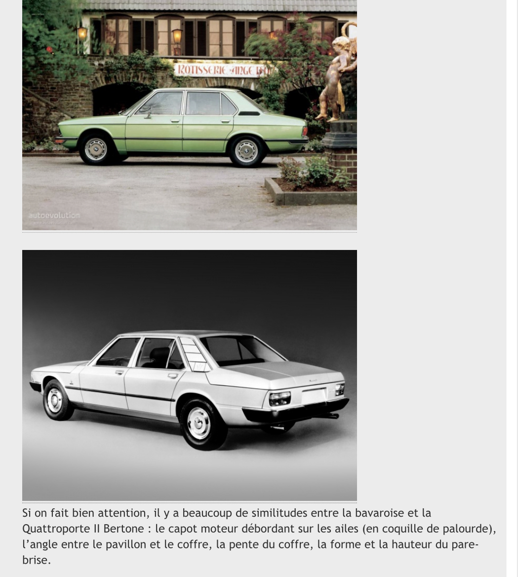 Bien vu également Blu Sera. C’est Marcello Gandini qui a dessiné la Quattroporte II pour Bertone et il a dessiné vers la même période la BMW série 5 de première génération.