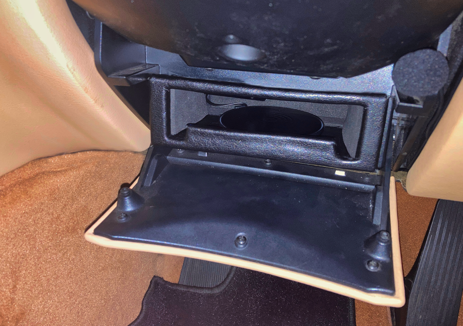 J'ai terminé la rénovation de l'installation audio sur ma QP V = exit le chargeur de CD Blaupunkt, au bénéfice d'un récepteur Bluetooth Loudlink et d'un pad de recharge sans fil Icarer en cuir, histoire de rester dans le ton, le tout placé dans une baie DIN également recouverte de peau =