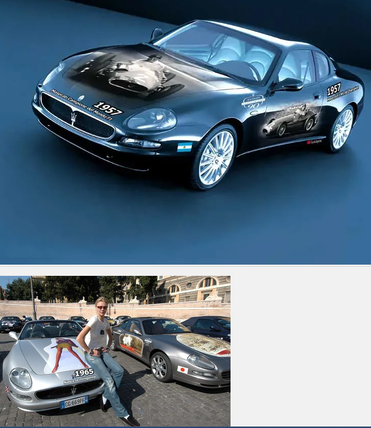 Ces trois groupes correspondent à trois catégories. Première catégorie, « 90 ans dans l’histoire ». Soit quatre-vingt-dix modèles de Maserati Spyder et de Coupé de la gamme actuelle, décorés pour commémorer un événement international important des 90 dernières années. L’année 1969 sera ainsi représentée par le premier atterrissage de l’homme sur la lune.