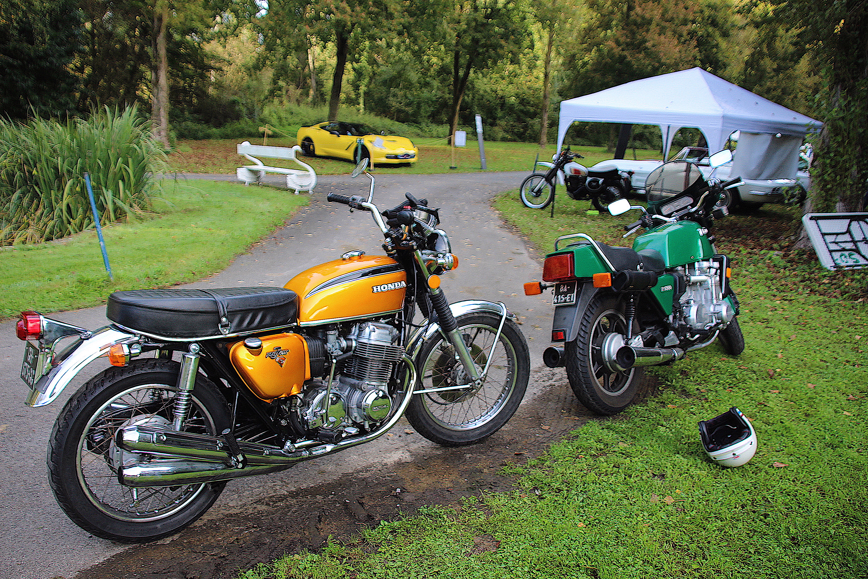 Et sur le site: des Masettes, des Aston, des Lotus.... si, si, des Féfé, des populo, des motos, des raretés, et beaucoup de Porsche... Plus de 300 voitures sur la journée.