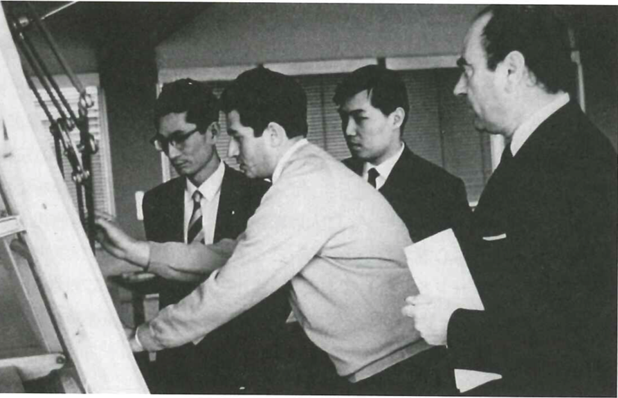 Sur cette photo de 1961, Giugiaro et le président de Mazda, Masataka Matsui, étudient un dessin, sous le regard de Miyakawa et de Nucio Bertone :