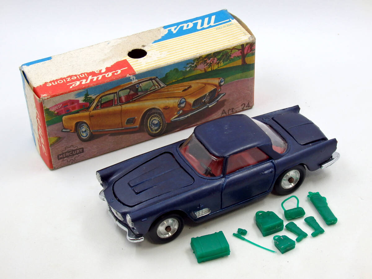 Un modèle vu sur un site d'enchères japonais = 3500 Gt produite au 1/43 par la marque Mercury en 1963, amusante car la voiture est accompagnée d'un jeu de petits bagages =