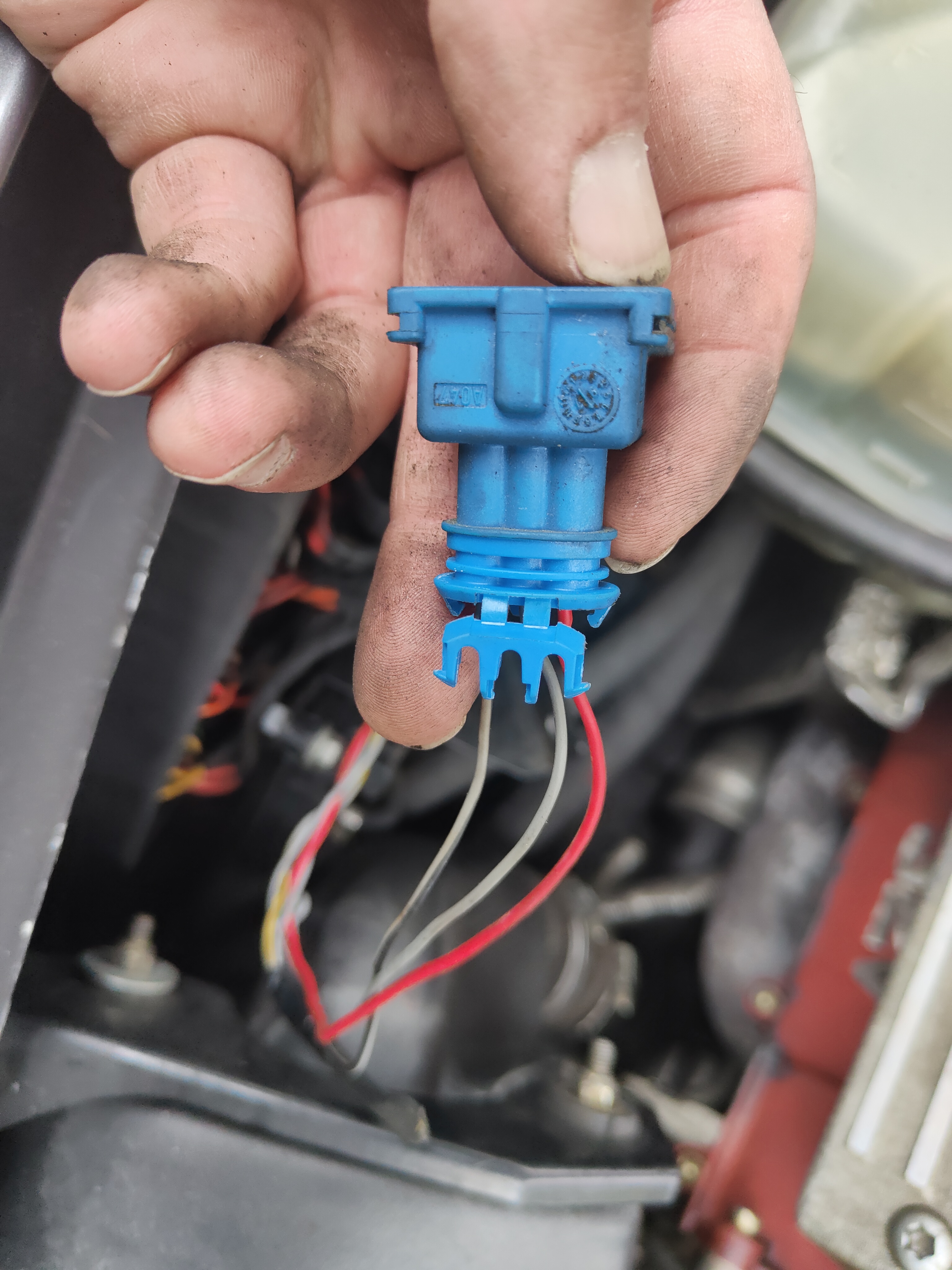 Petit découverte, au niveau de la boîte élec injection devant le vase d'expansion, connecteur du dessous bleu à 3 broches.
