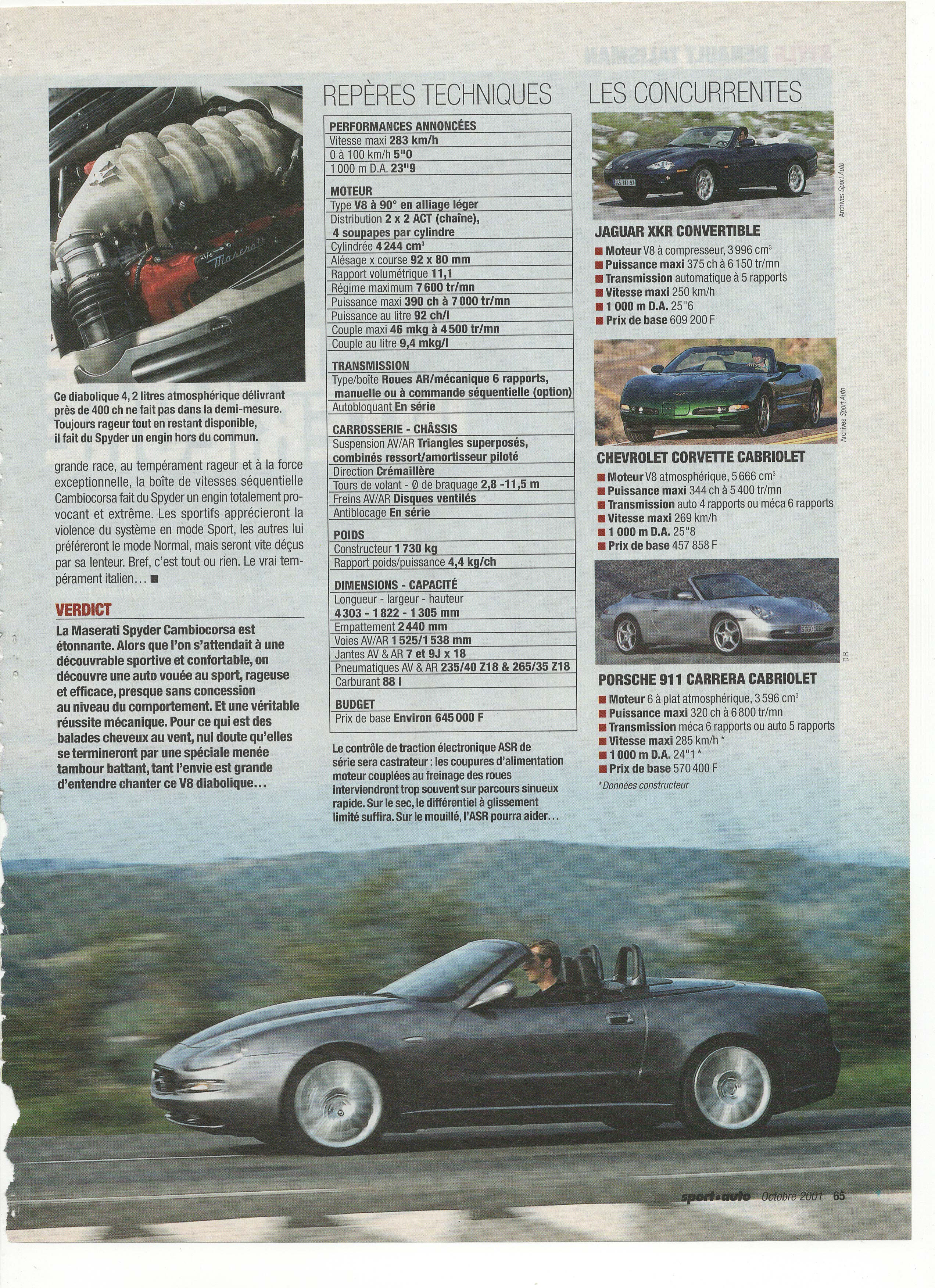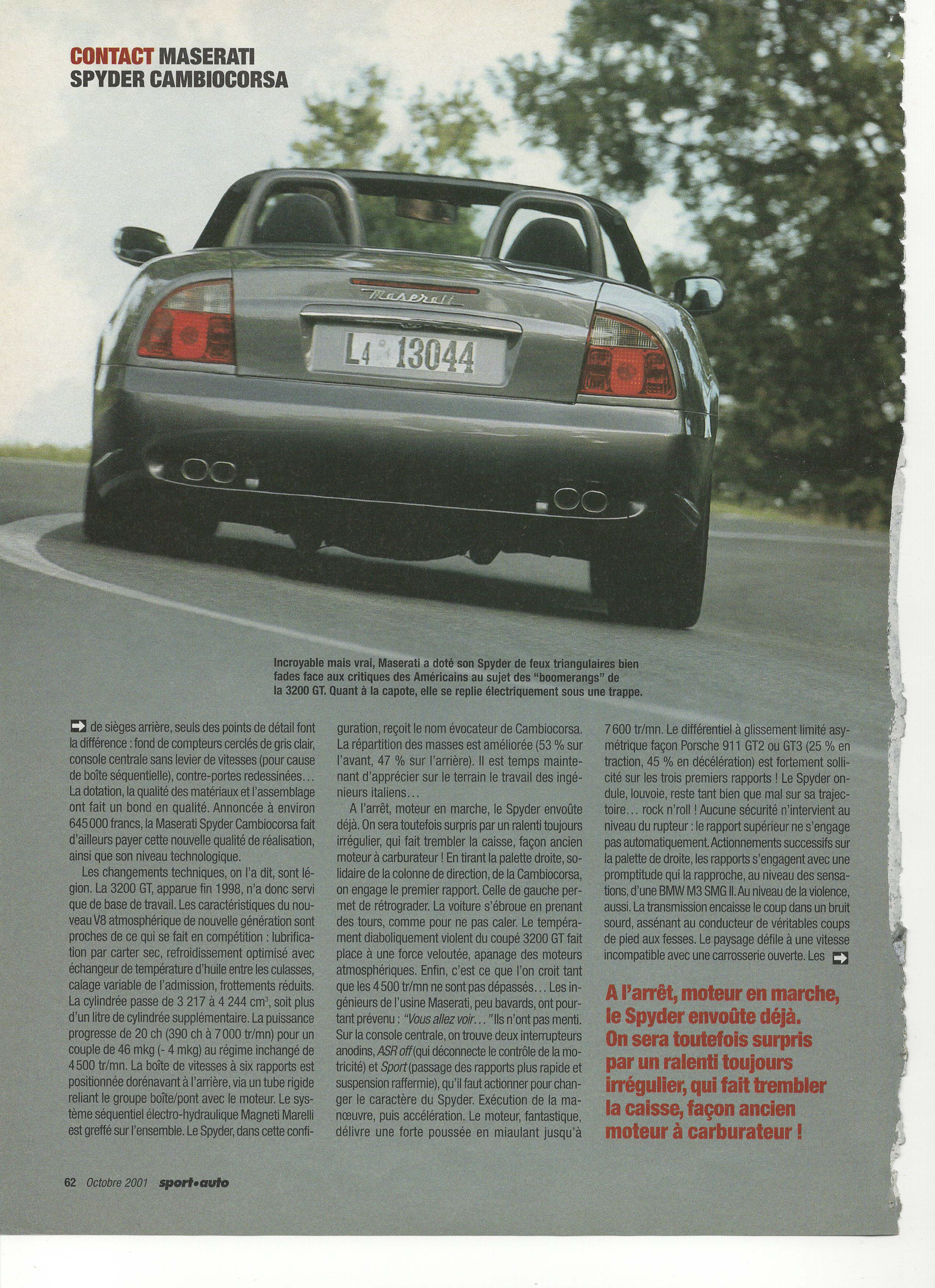 J'ai retrouvé un article de Sport Auto de 2001 sur le Spyder.