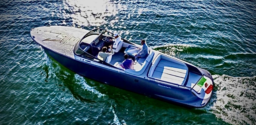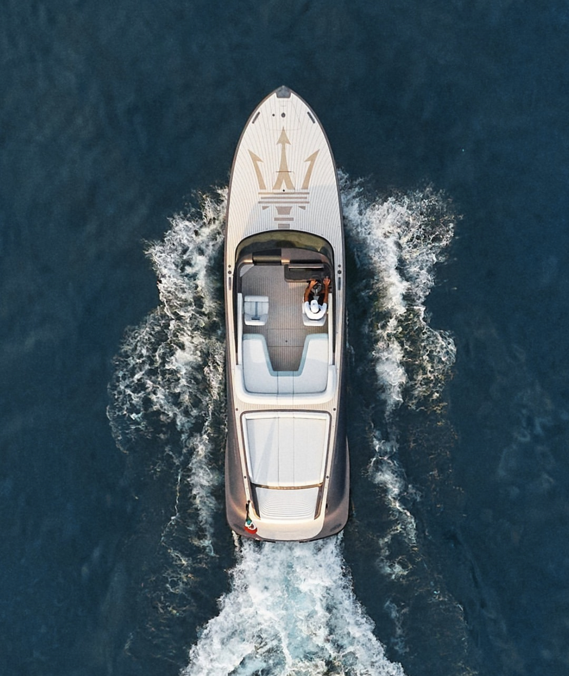Maserati a révélé sa nouvelle offre commerciale, le bateau Tridente (motorisation électrique), présenté tout récemment en même temps que la GranCabrio Folgore électrique :