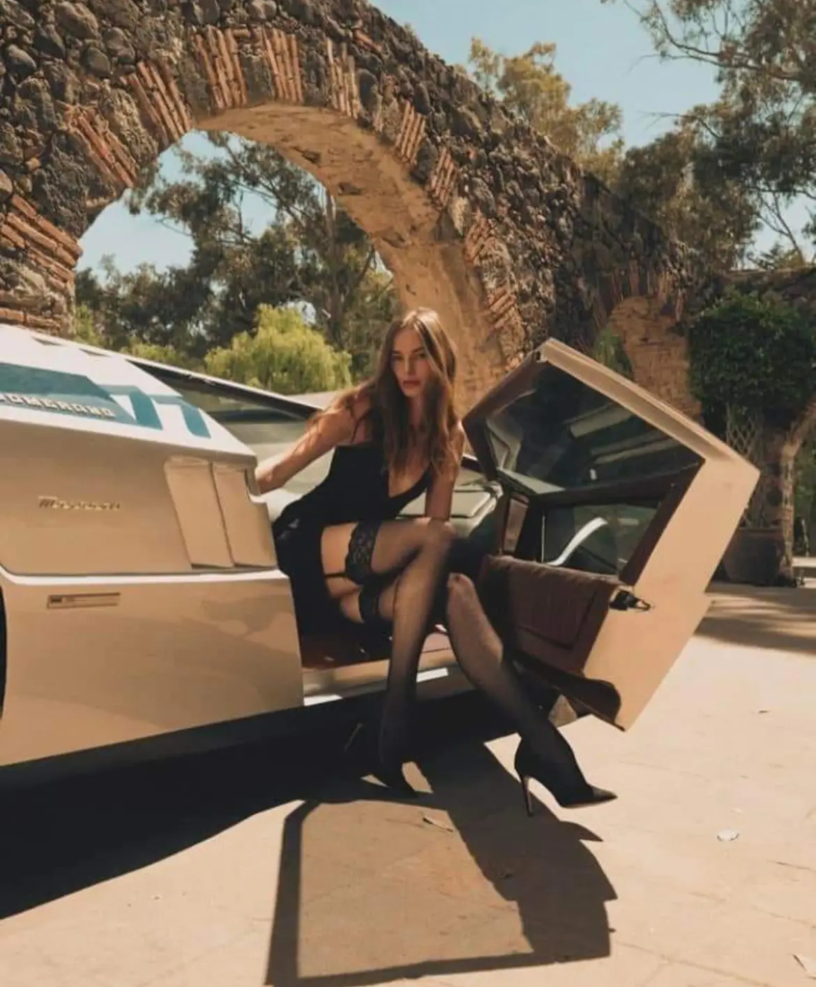 Murs antiques, voiture ultra futuriste (même si elle a 52 ans !), beauté féminine intemporelle 😉