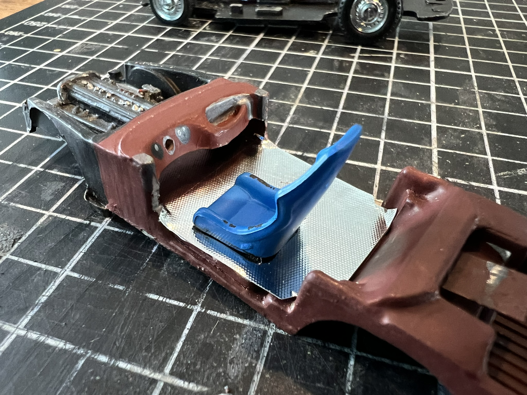Autant en profiter pour ajouter des détails, comme le bouchon du réservoir, récupéré sur une Tipo 61. Un trou à la Dremel plus tard, ça rentre bien ;-)
